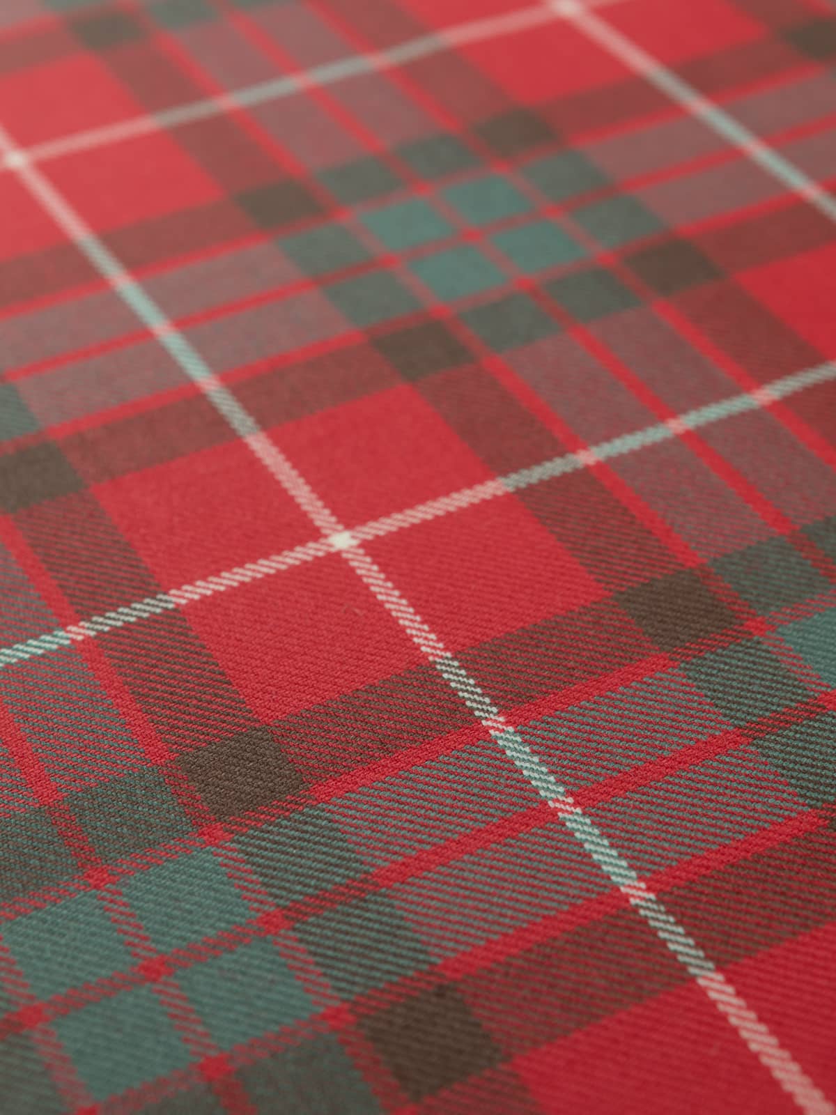 Shades: A softened interpretation of the Fraser Red palette, featuring a muted red base paired with gentler green tones and subdued charcoal elements. The overall effect is more restrained than the modern red variant, reflecting the “muted” colouration used by some mills to create an earthier, less saturated appearance.