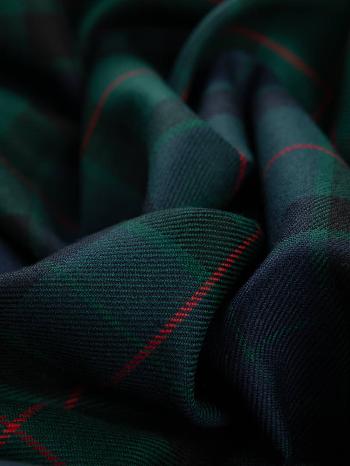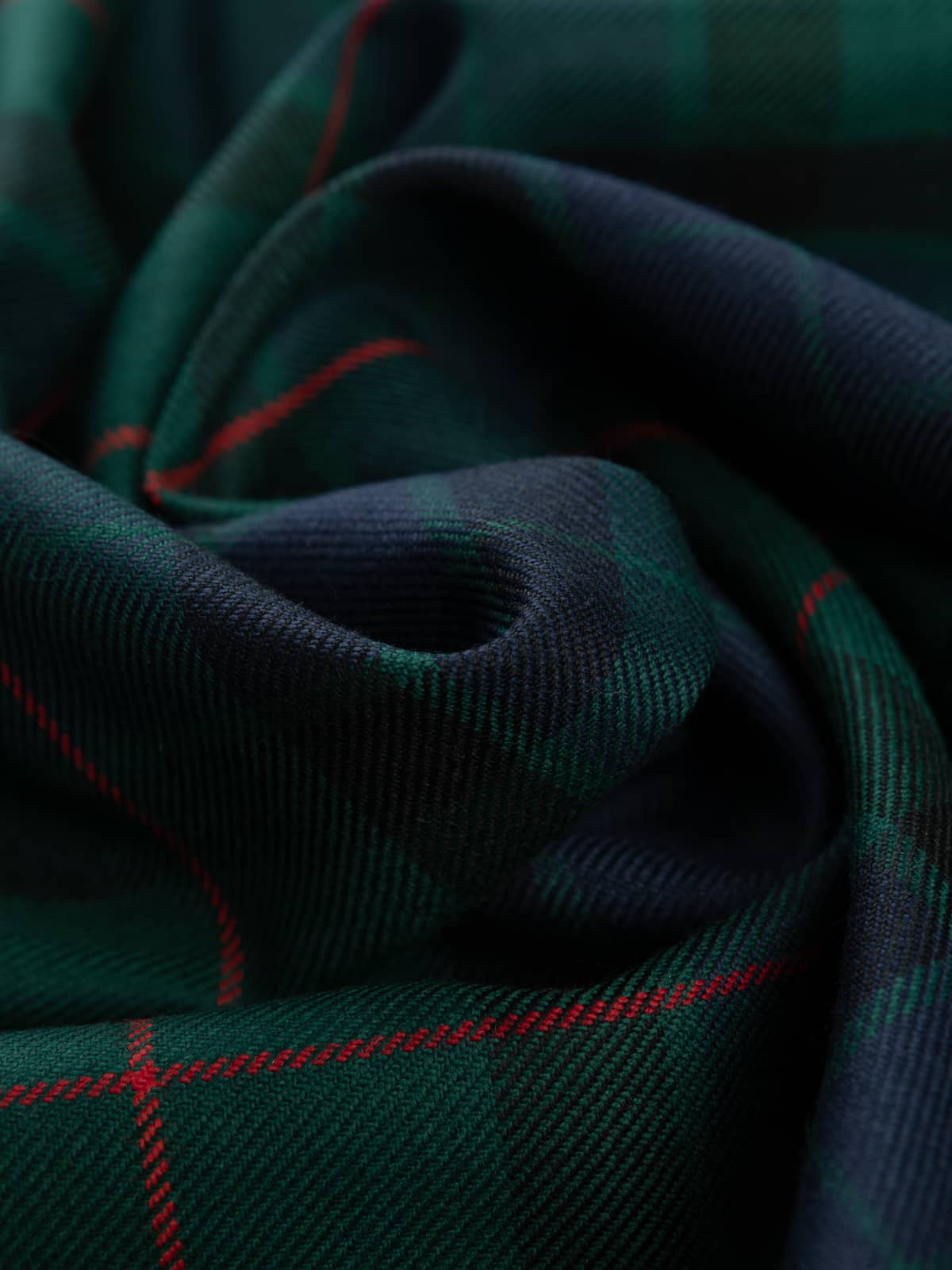Drape: In addition to holding crisp details, this fabric drapes with a reassuring weight, ideal for bias cuts, flares, and flounced designs. The tartan sett can be cleverly used to create striking focal points in bespoke garments and creative pieces.
