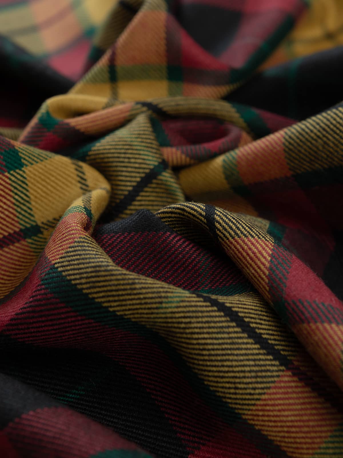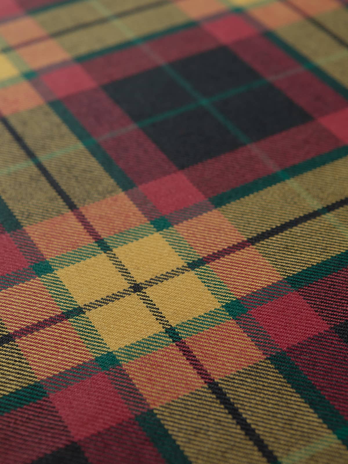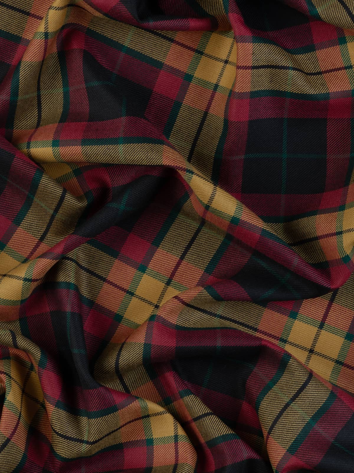 Drape: In addition to holding crisp details, this fabric drapes with a reassuring weight, ideal for bias cuts, flares, and flounced designs. The tartan sett can be cleverly used to create striking focal points in bespoke garments and creative pieces.