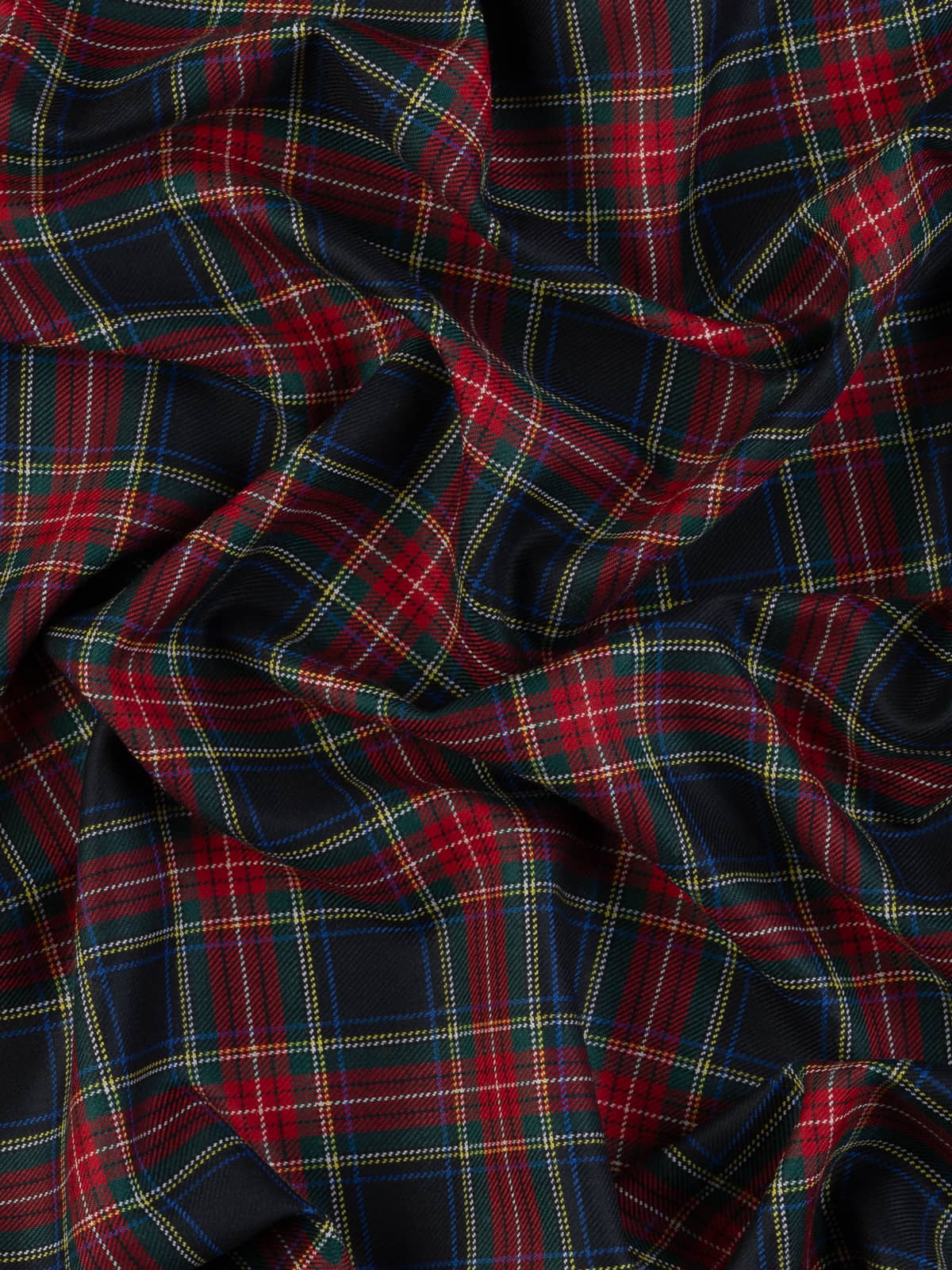 Drape: In addition to holding crisp details, this fabric drapes with a reassuring weight, ideal for bias cuts, flares, and flounced designs. The tartan sett can be cleverly used to create striking focal points in bespoke garments and creative pieces.
