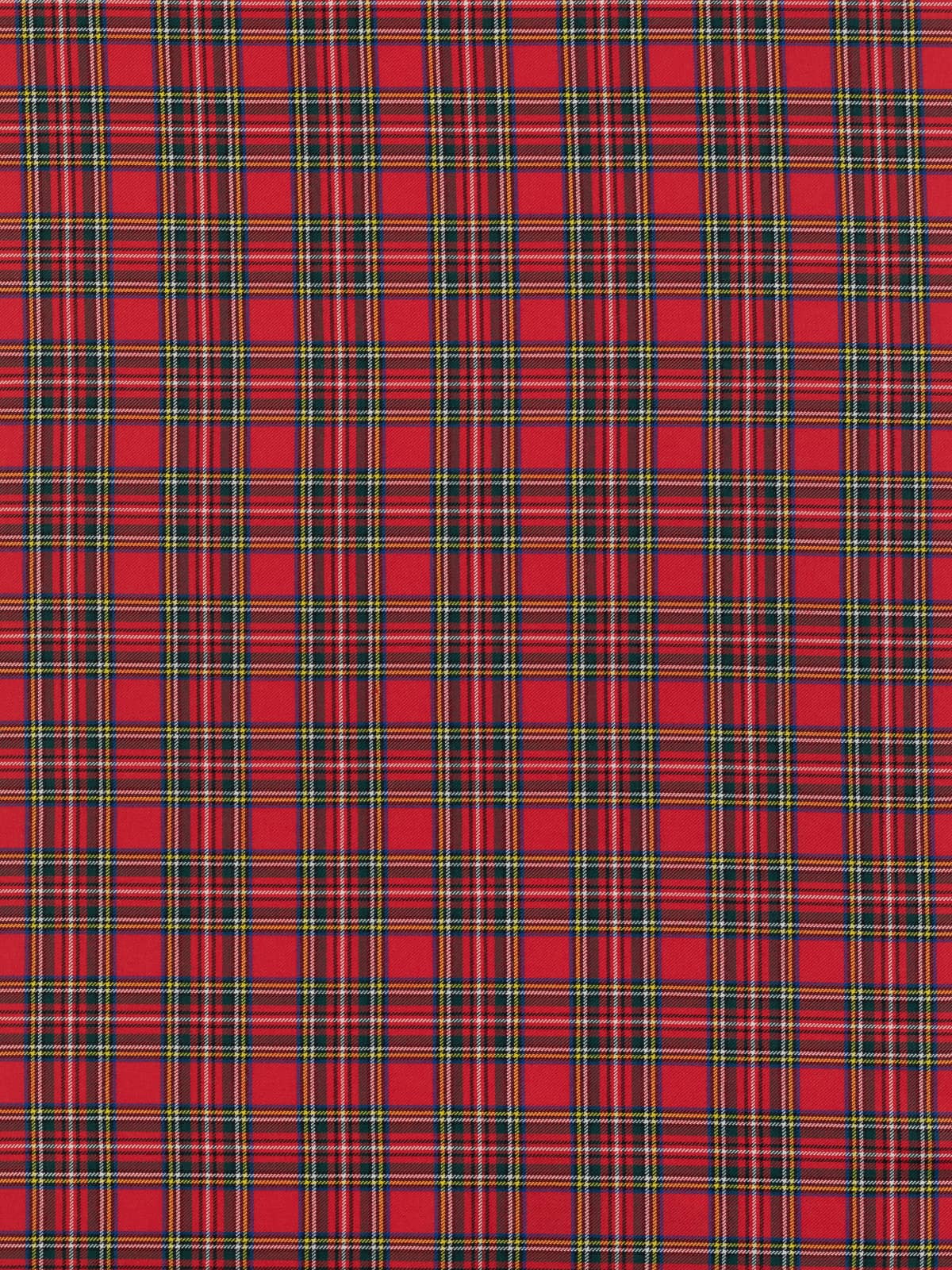 Shades: A vivid modern palette dominated by bright scarlet red, supported by deep green, navy, and black to create strong depth. Yellow and white pinstripes add clarity and lift the overall contrast, giving the tartan its crisp, energetic appearance at a small scale.