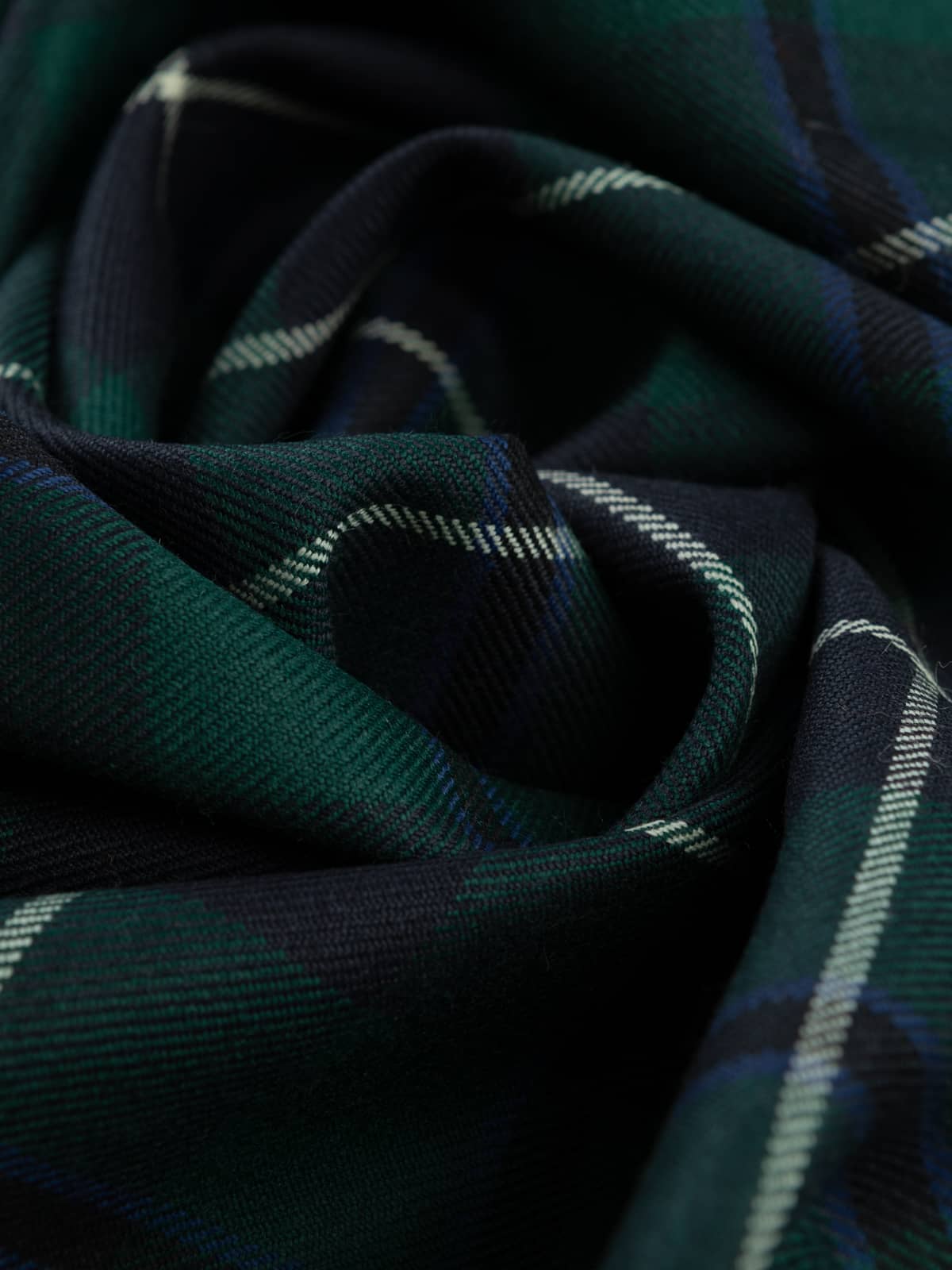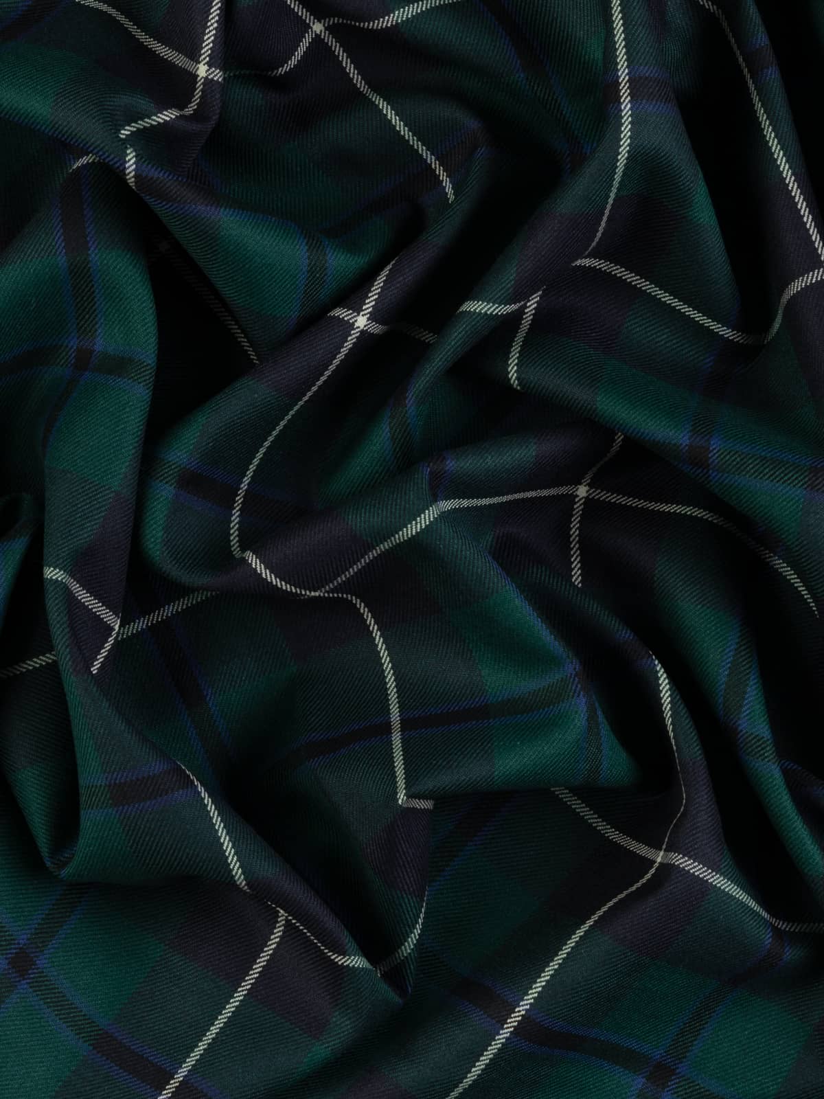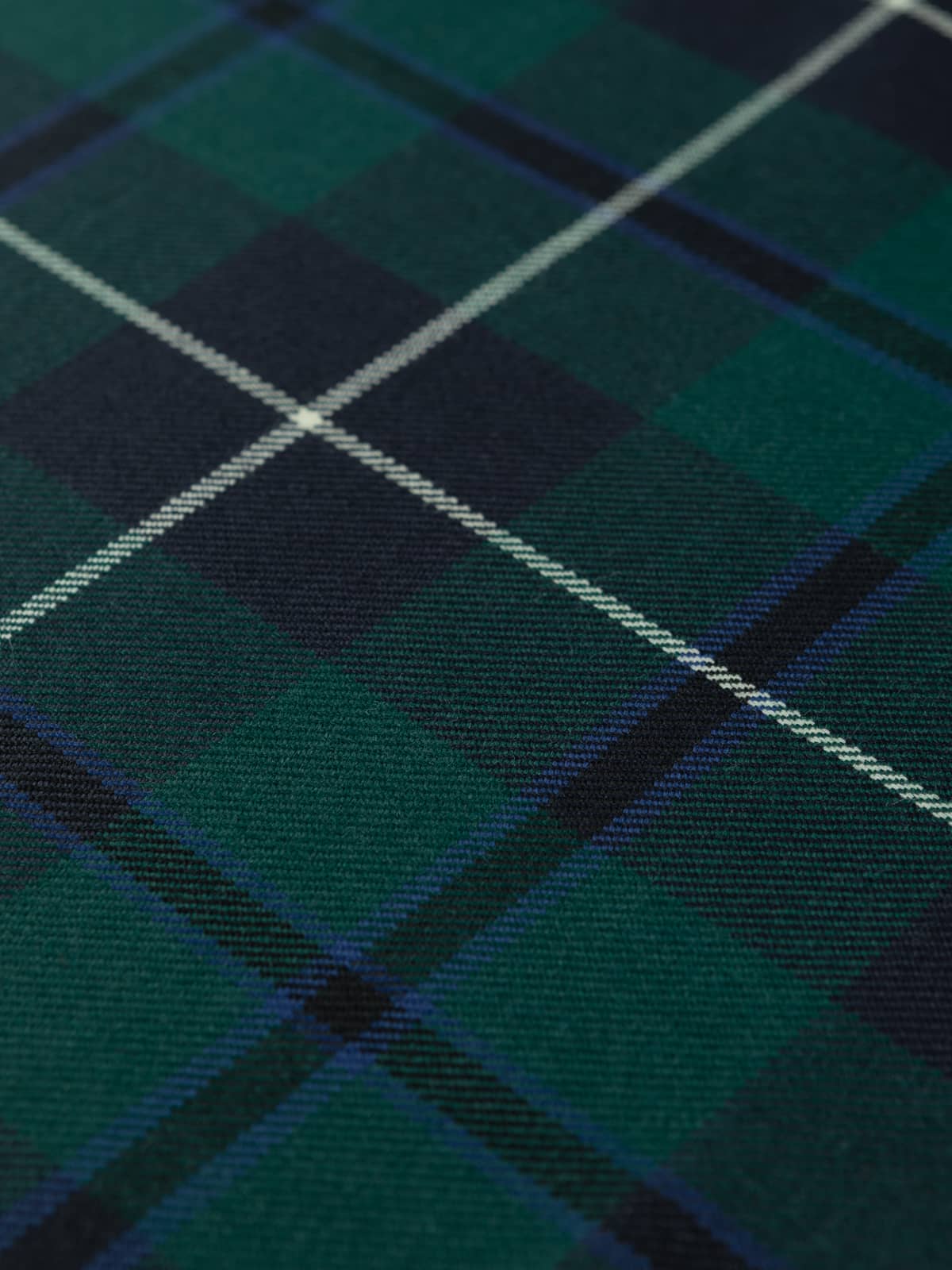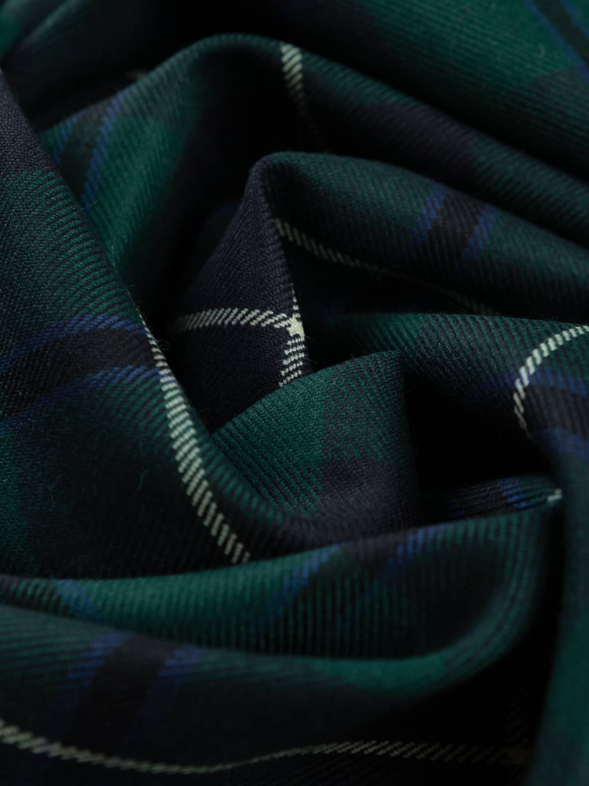 Drape: In addition to holding crisp details, this fabric drapes with a reassuring weight, ideal for bias cuts, flares, and flounced designs. The tartan sett can be cleverly used to create striking focal points in bespoke garments and creative pieces.