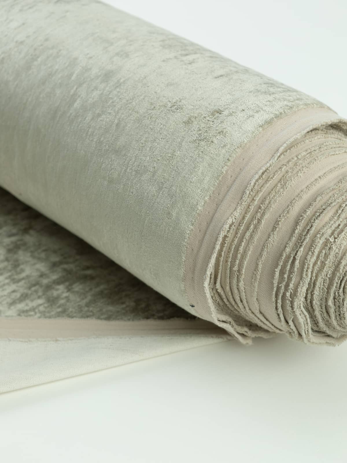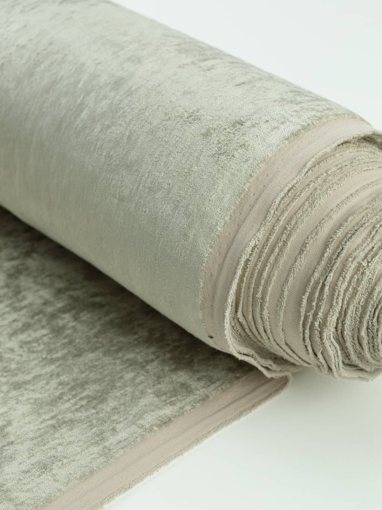 Shade: A neutral but lustrous silver-beige hue gives this textured, semi-crushed chenille (latex-backed) upholstery fabric a luxurious style without being ostentatious. Neutral hues have a certain timeless style and sit alongside most other colours and tones.