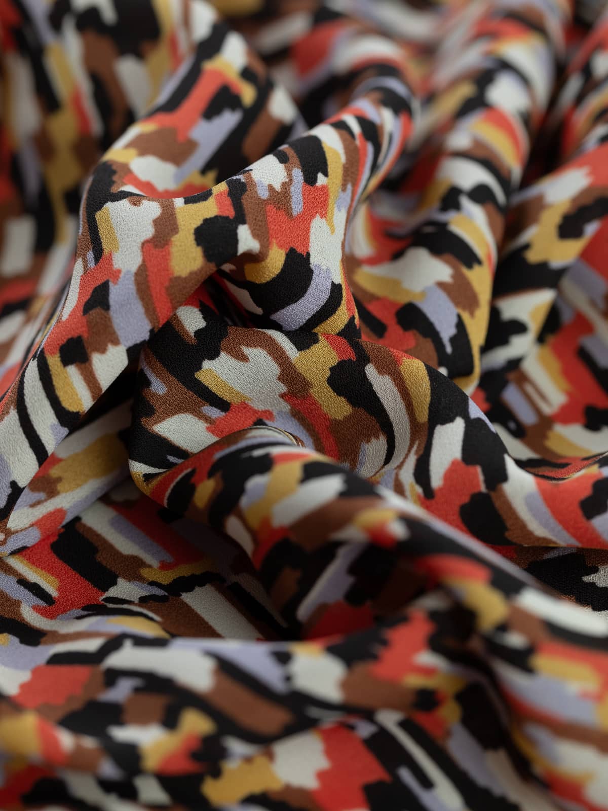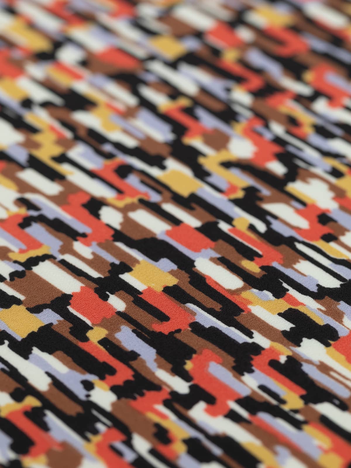 Design: Printed with an abstract design resembling lively painted brush strokes.