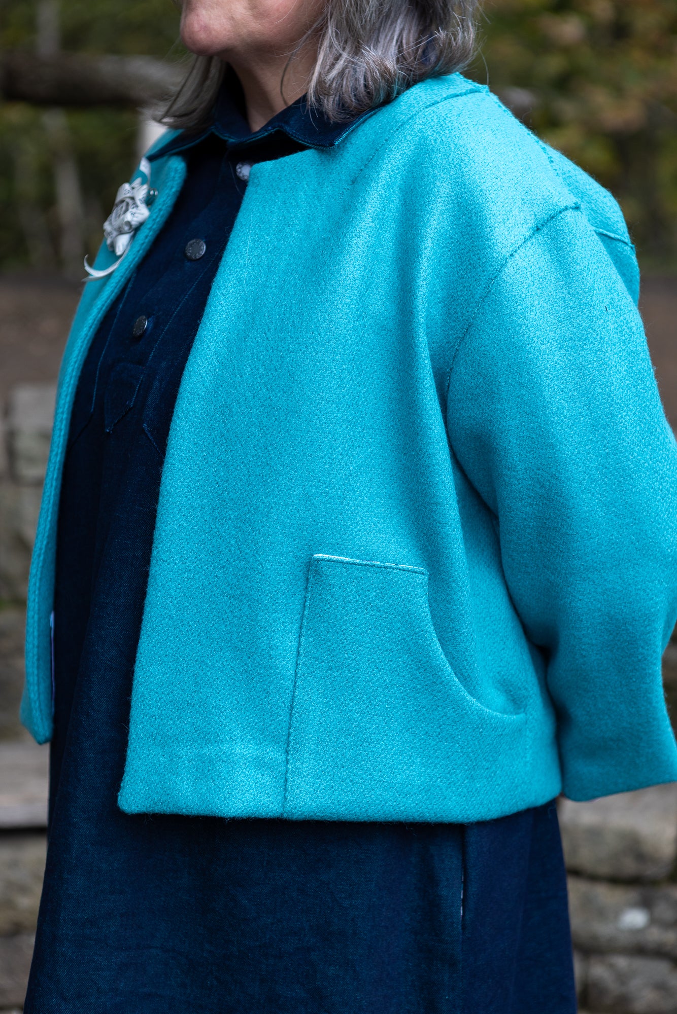 Accessories: Complete your look with coordinating wraps, brooches, or statement bags. We especially recommend The Frame Bag pattern as a beginner-friendly handbag suitable for most medium & heavy weight wool fabrics.