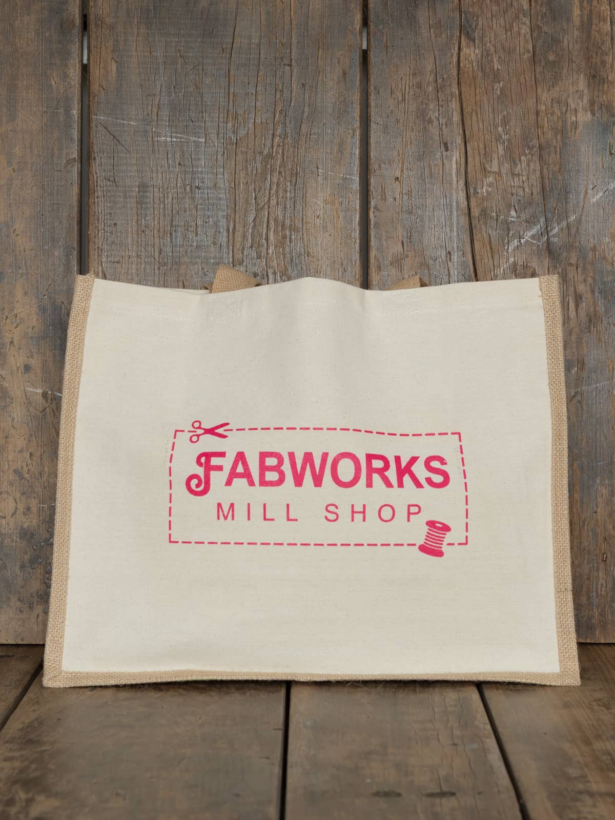 The comfortable double handles make it easy to carry, and the natural textures of canvas and hessian give it a classic, timeless appeal. Finished with the Fabworks Mill Shop logo, it feels instantly familiar and right at home among your creative tools.