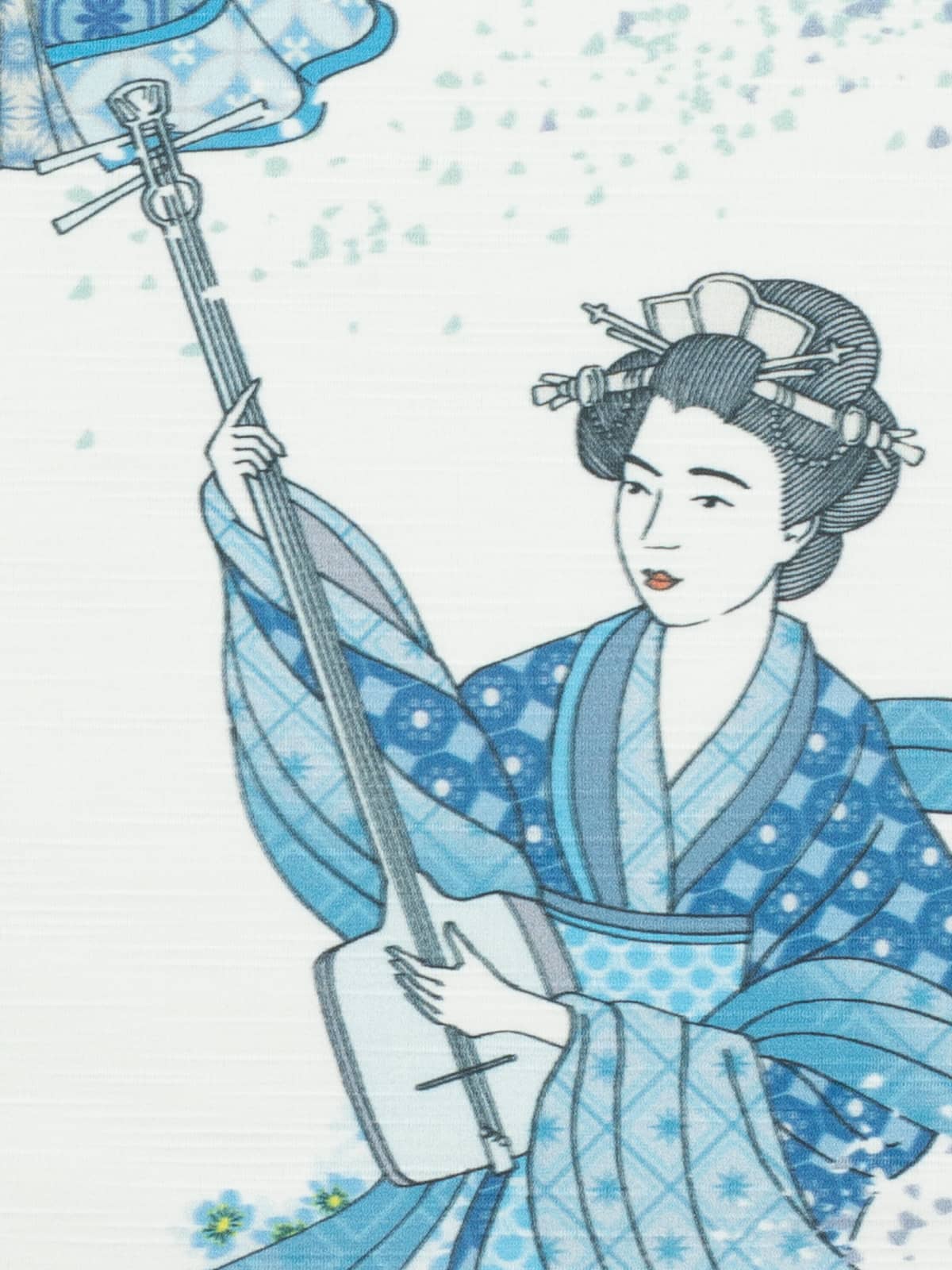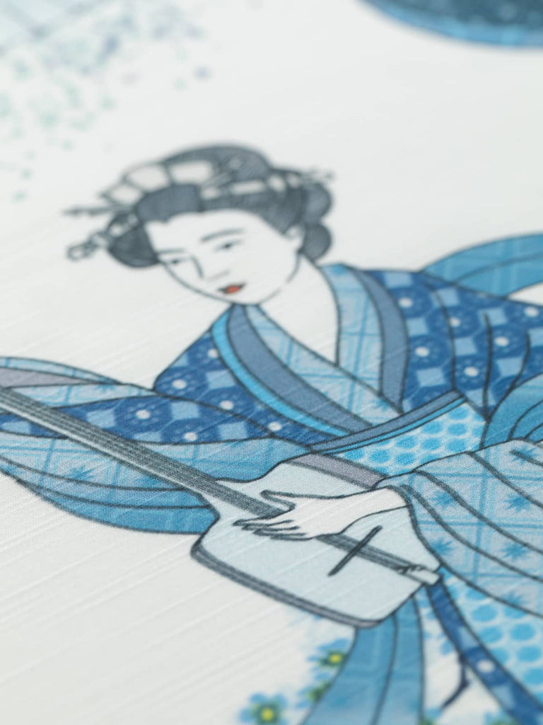 Design: Printed with an iconic design of parasol-twirling geisha, wearing exquisite kimono robes and surrounded by sweet sakura trees.