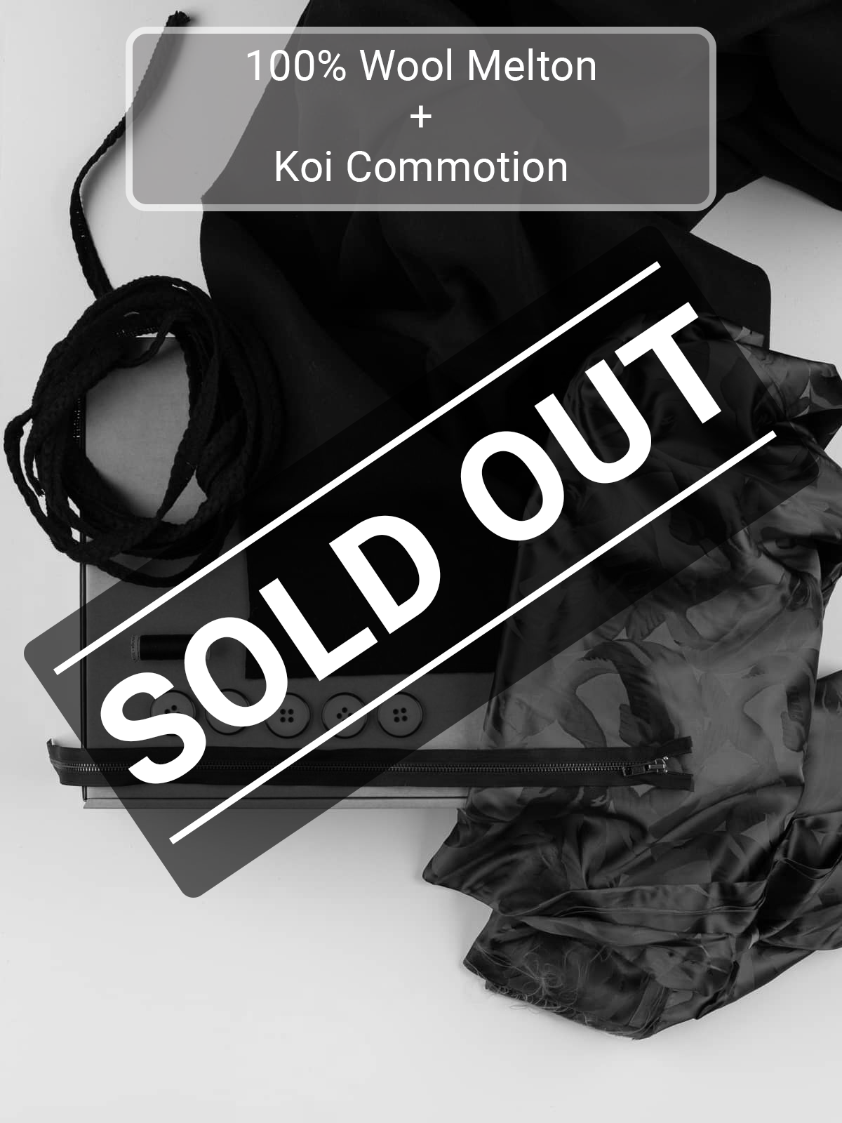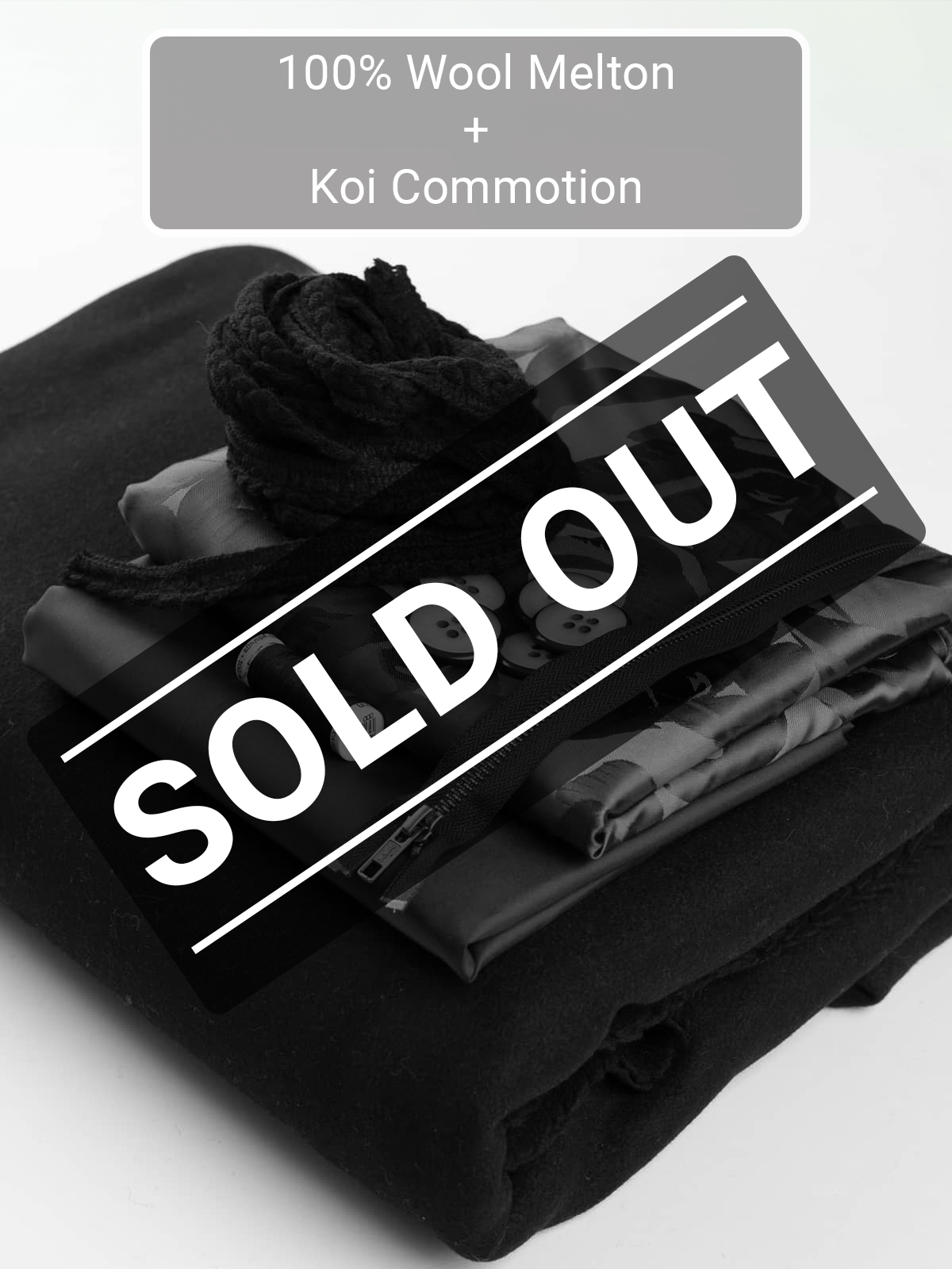 Melton: The black wool melton fabric included in the Surprise Box has been sourced from a garment manufacturer in the UK, whose surplus stock is available in short lengths only, ranging from 2.4m to 3m each.