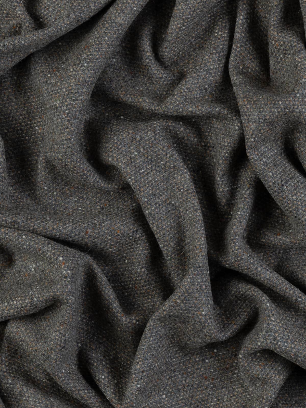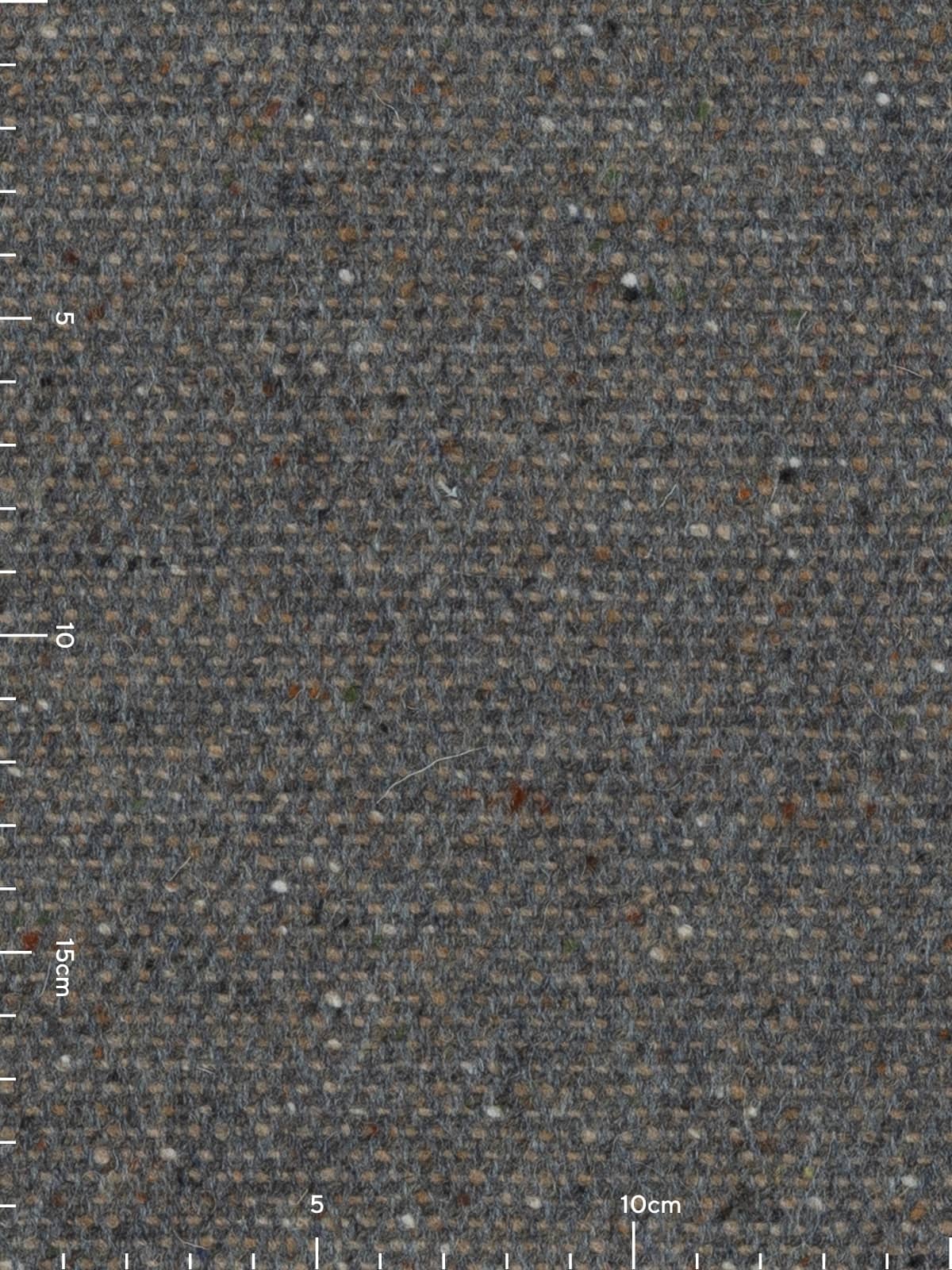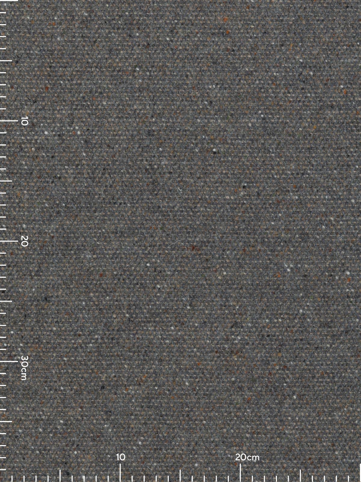 Design: Look closely, and a classic herringbone weave can be perceived within this Lambswool Donegal Tweed. The flecked nature of the Donegal yarns sitting against the grey melange yarns of the weft creates an obscured effect to the weave.
