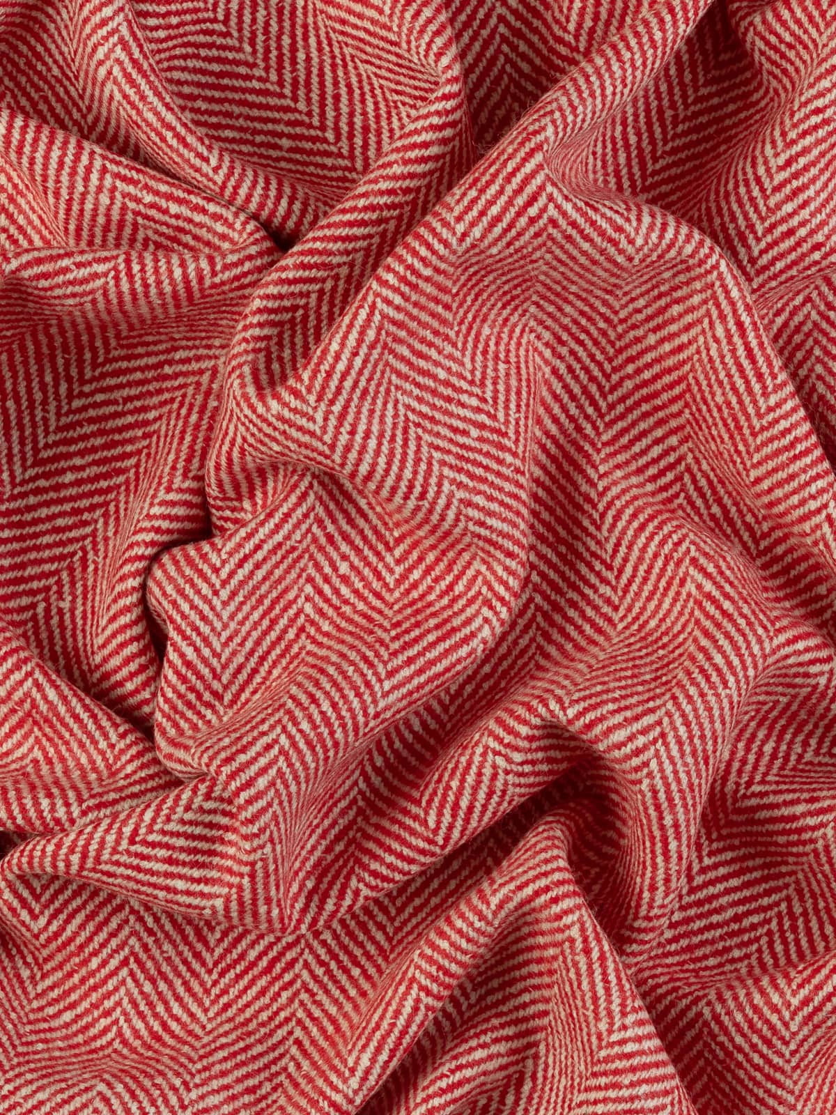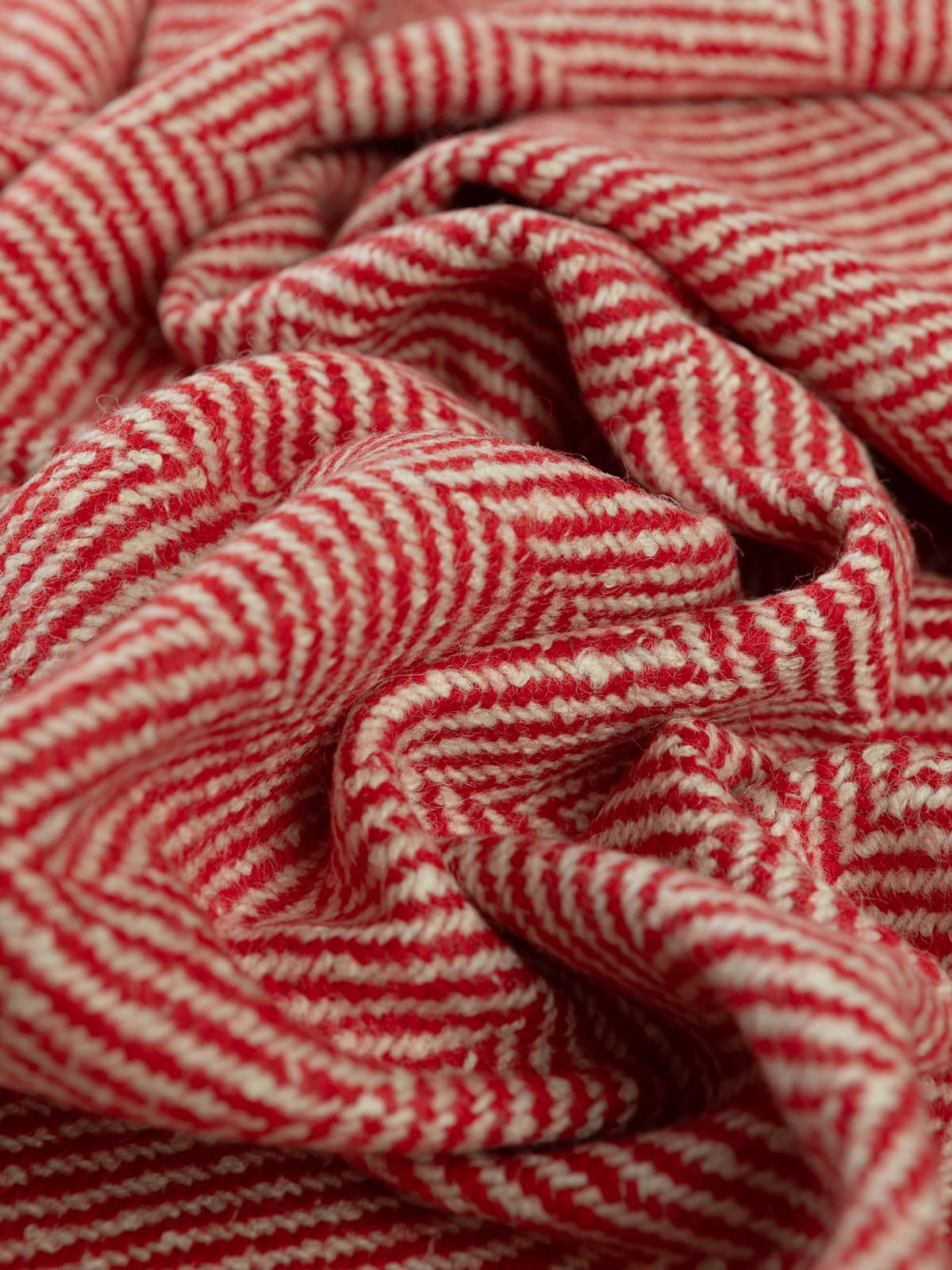 Shades: This classic Jumbo Herringbone showcases chunky yarns of natural white through the warp and classic Holly Berry Red (an orange-based bright red), contrasting perfectly to create the characteristic chevrons of the herringbone weave.
