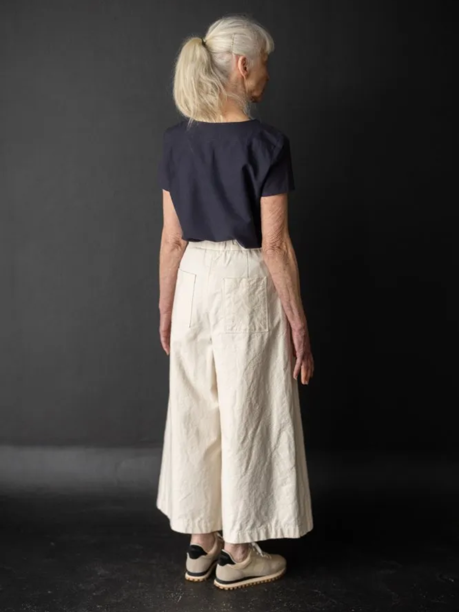 We recommend using mid-weight cotton canvas, 8oz organic sanded twill, corduroy, light-medium weight woollens, and 7-10oz denim. Lighter-weight cloths like linen will give you a softer silhouette.