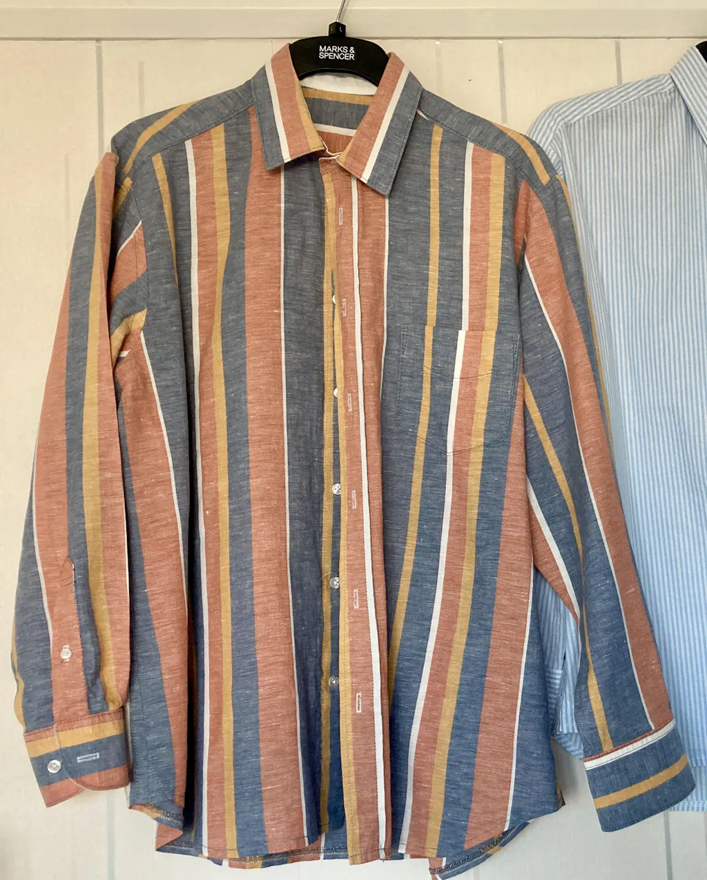 Like its predecessor, this striped wonder is stable, soft and has the feel of a favourite linen shirt. This light (but not flimsy) relaxed chambray style fabric will form crisp details (with a little light interfacing), on collars and cuffs. Used in quantity it will form feminine gathers, pleats, pin-tucks and ruffles. So all you have to do is decide what to make.
