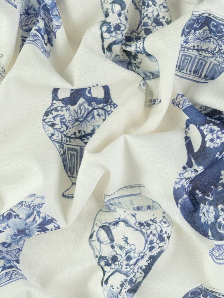 Linen & Cotton Curtaining - Summer Chinoiserie Jars