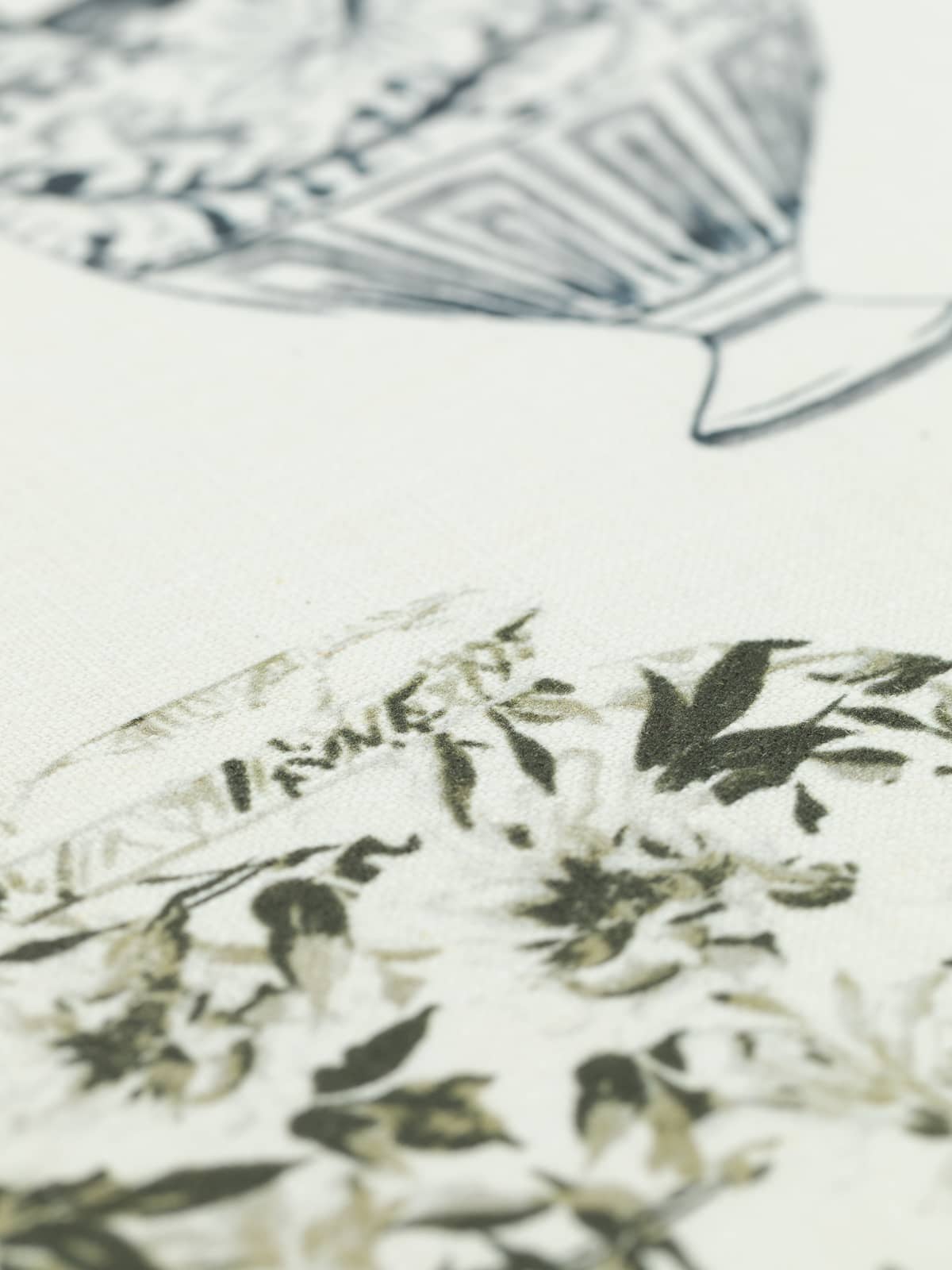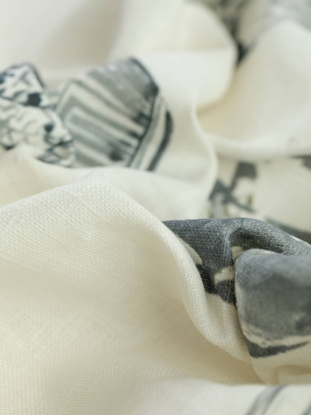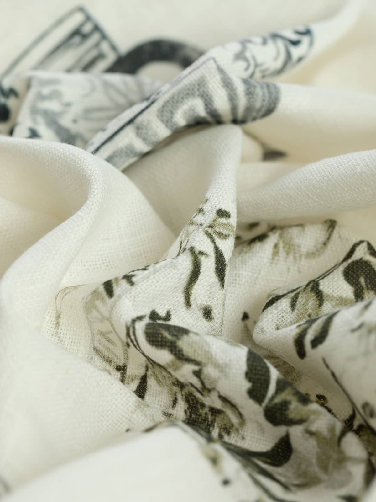 Shade: Winter Chinoiserie Jars is printed with a simple monotone palette onto a classic natural white linen and cotton base. Moody grey tones form a cool seriousness to this stylish palette. A perfect base for adding accent colours of your choosing.