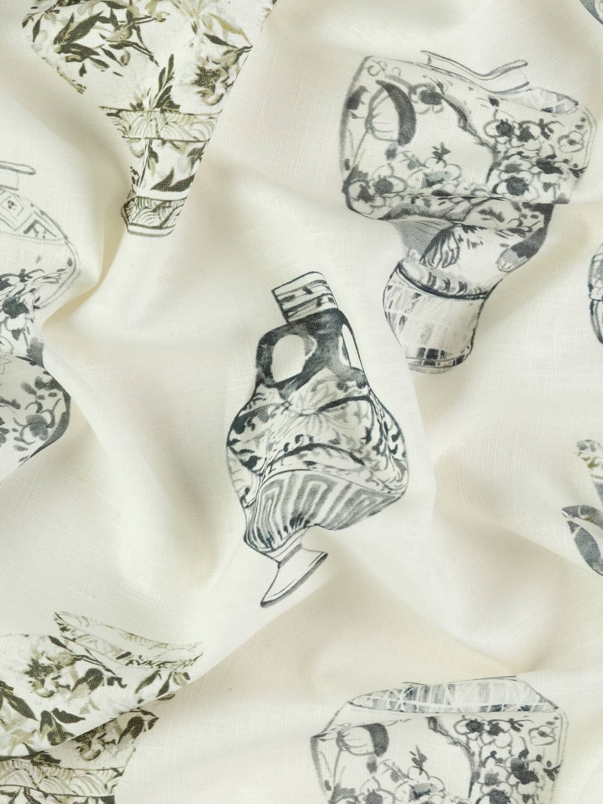Linen & Cotton Curtaining - Winter Chinoiserie Jars