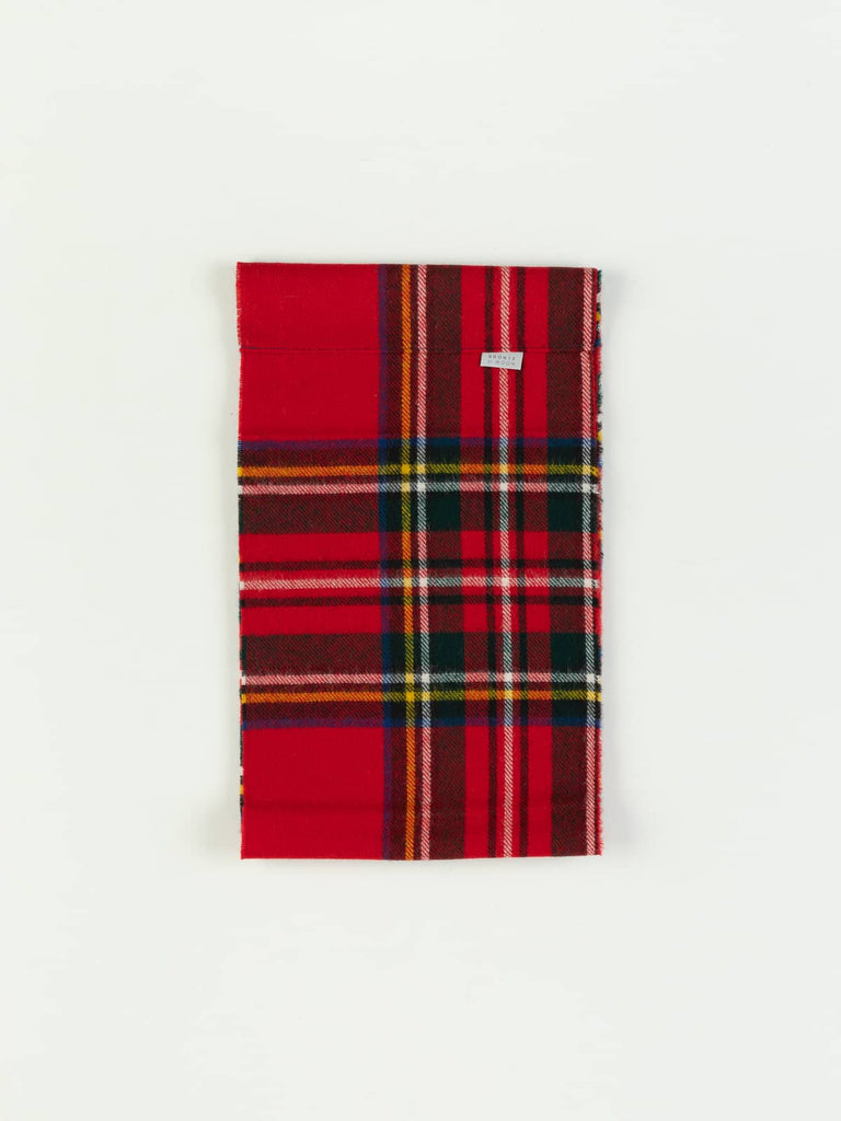 This infinity scarf showcases the iconic Royal Stewart tartan in rich strawberry red, enlivened by regal gold, spruce green, admiral blue, white, and black, timeless, indulgent, and instantly recognisable. Woven from brushed Merino wool and stitched into a soft tweedy loop with a neat Bronte by Moon tag, it slips on effortlessly and twists into secure, cosy layers that stay in place, making it the perfect heritage piece to elevate any winter overcoat.