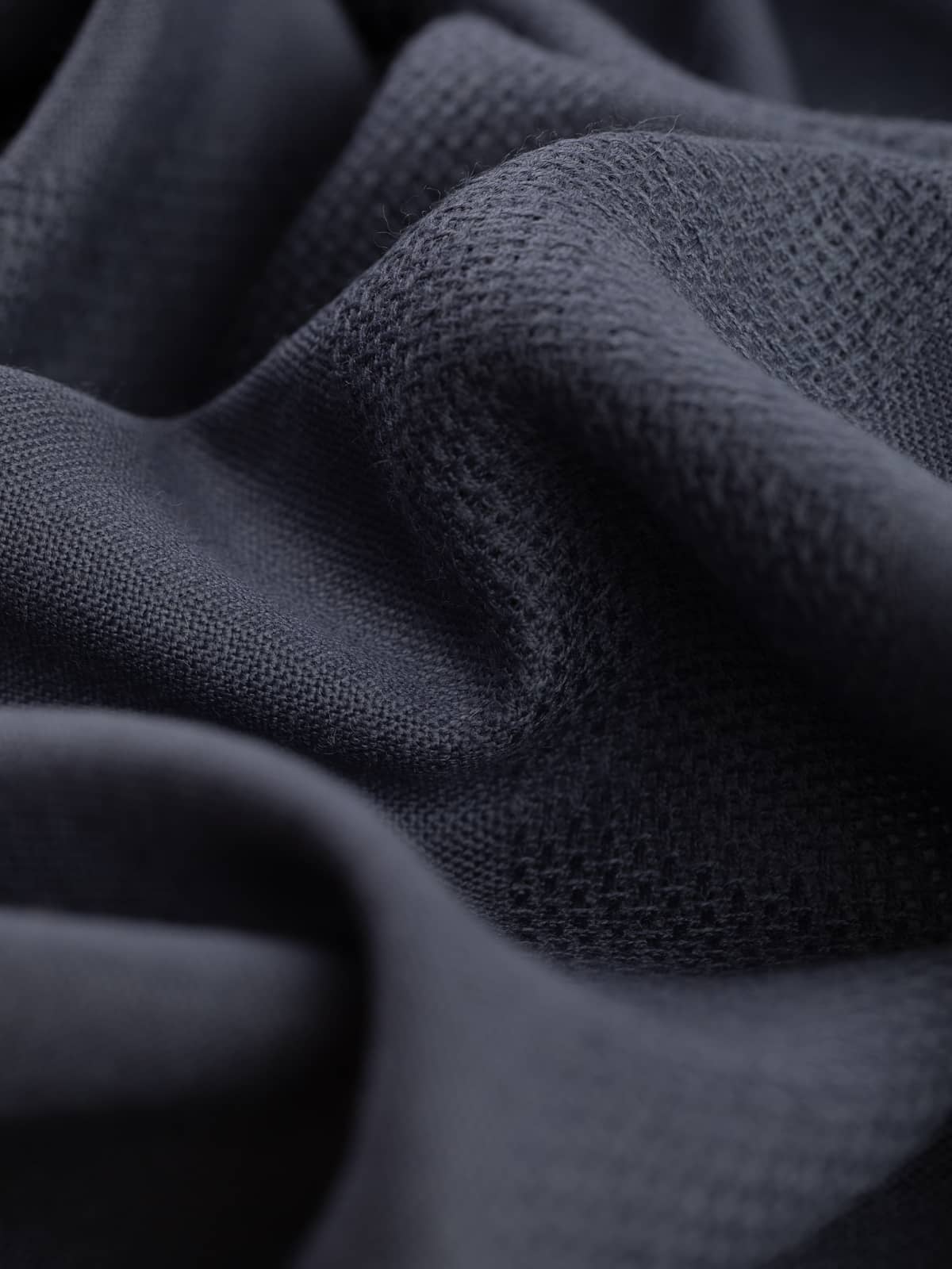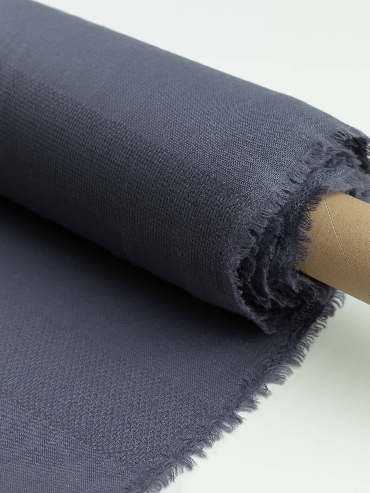 Texture: This woven Leno striped fabric has the feel of a lightly brushed wool fabric where the closely woven areas between the stripe are relatively smooth, akin to a fine woollen. The Leno striped areas have a pleasing light texture, where the subtle lustre catches the light, creating visual interest in an otherwise plain fabric.