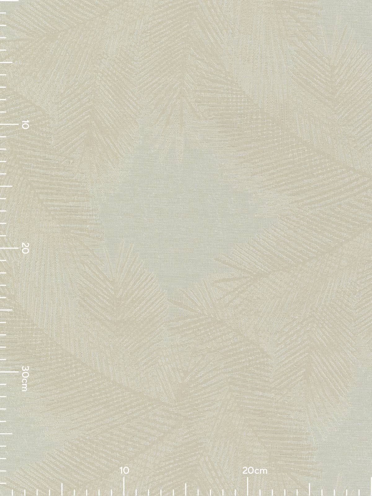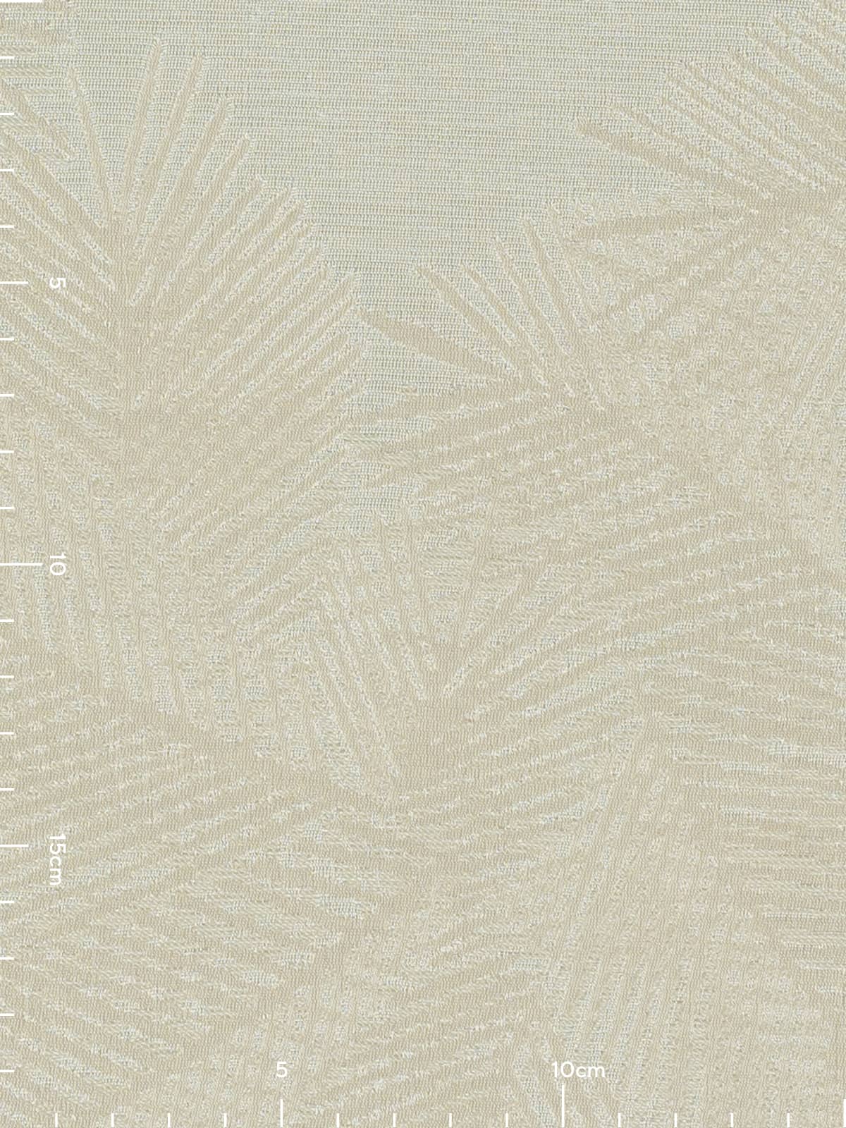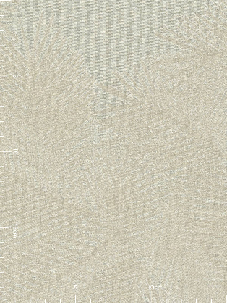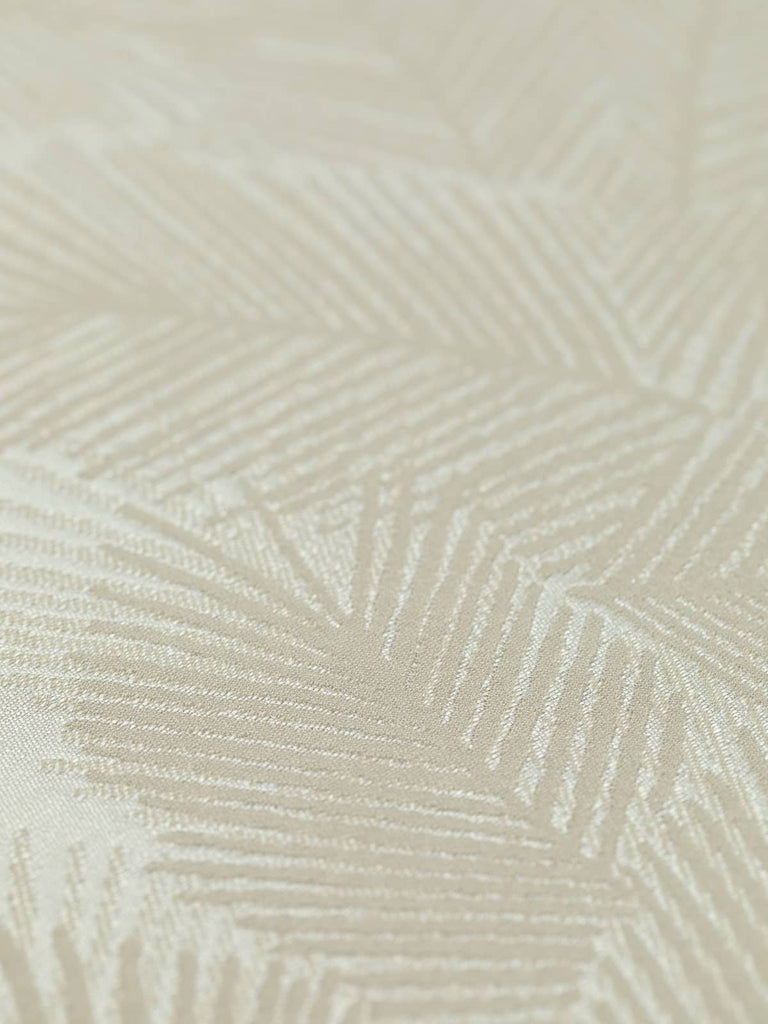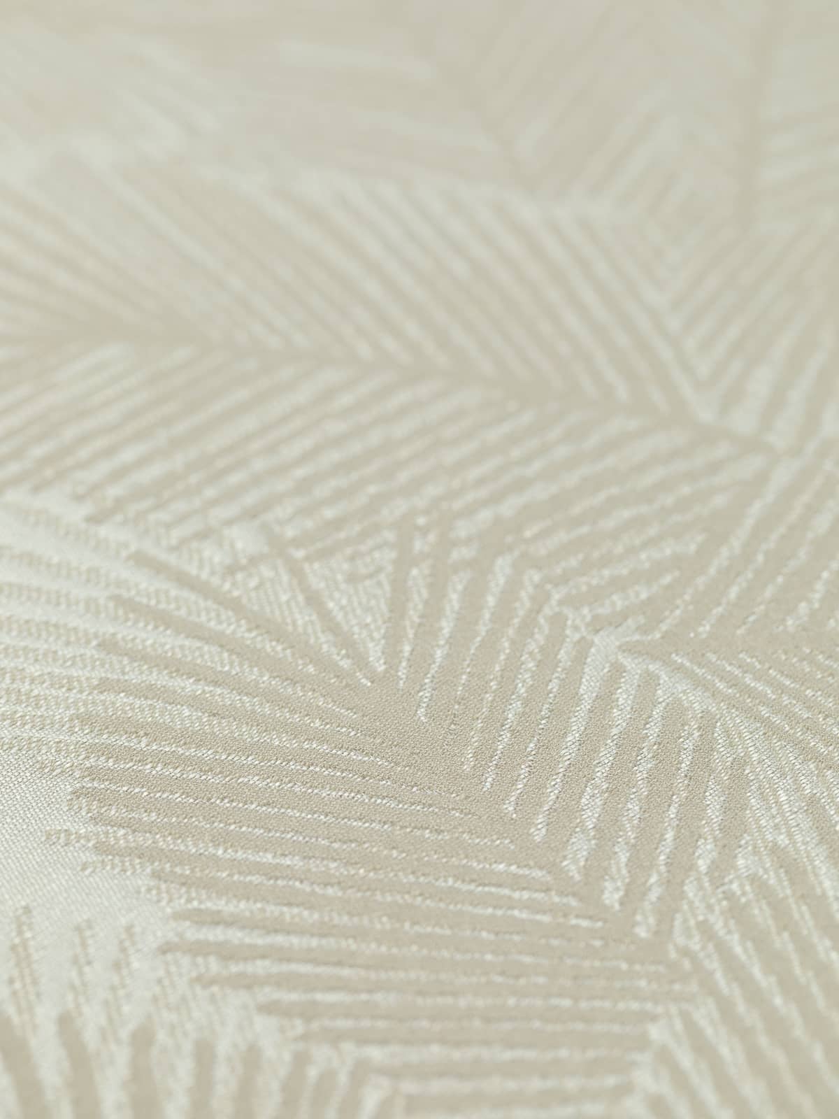 Design: Palm Trellis features a finely woven silken damask-like jacquard weave where the champagne-hued silken yarns sit in the background, shimmering and catching the light with a silken lustre. The feature design of trellis-like palm fronds presents a darker champagne beige hue in a matte finish.