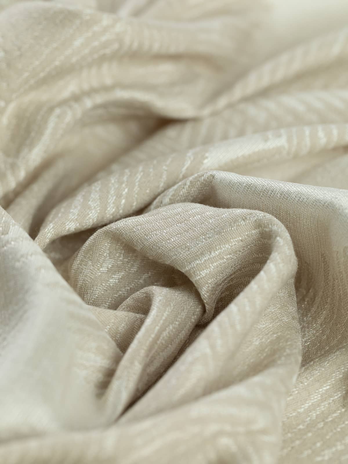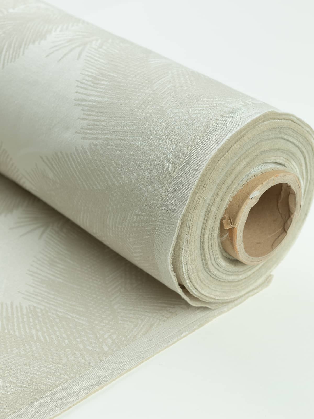 Style: Pale neutral tones have a timeless style and are perfect for creating interior furnishings with an air of light and airy chic. This elegant jacquard woven fabric can easily be styled in an indulgent, sumptuous manner alongside other satin-type and jacquard fabrics or paired down and become purely a textural accent alongside solid neutral fabrics, crisp cottons and timeless linens.