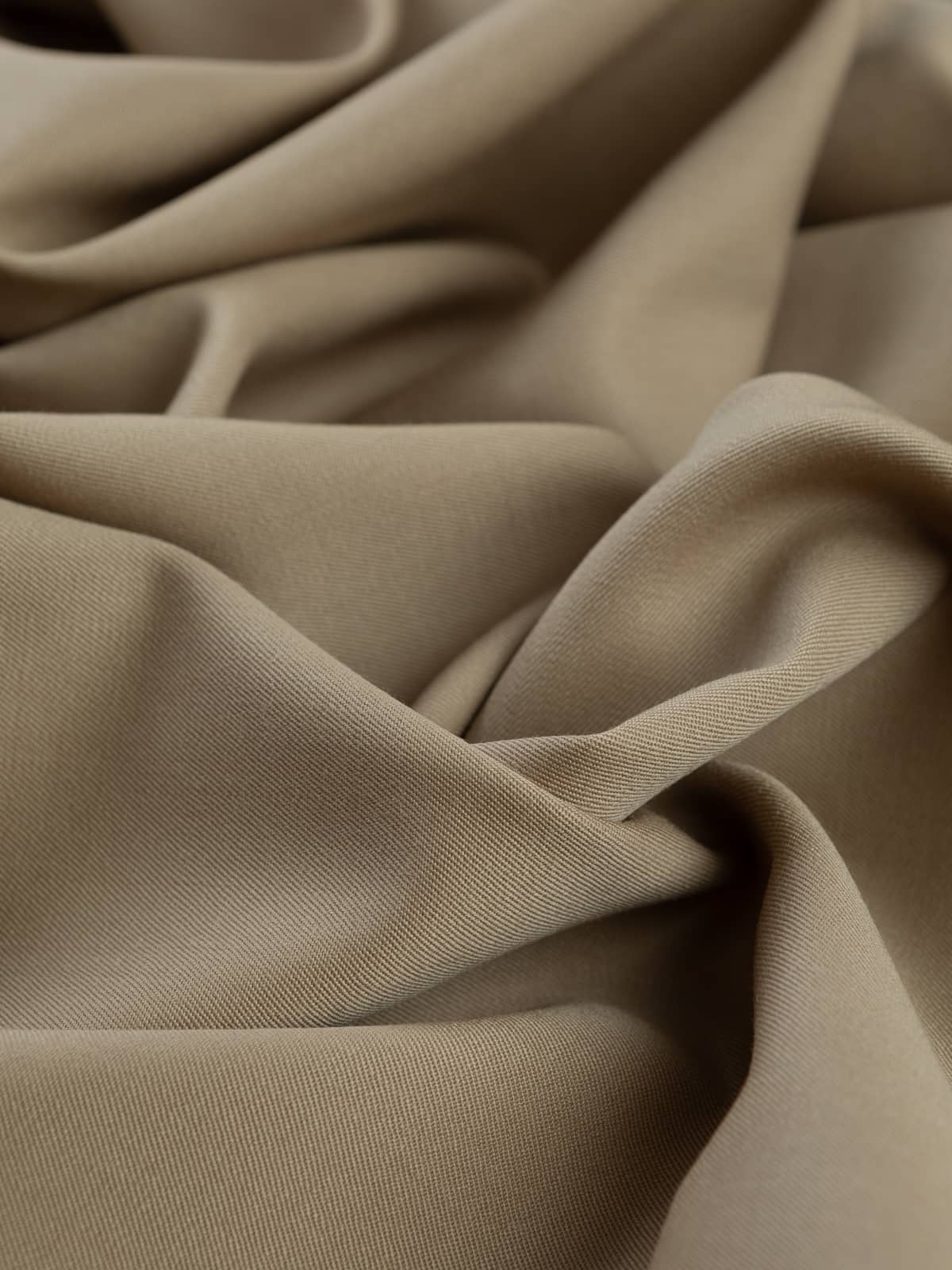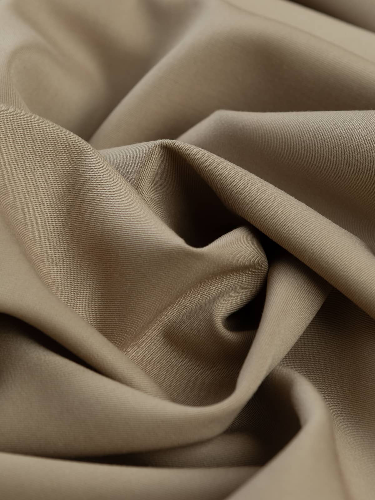 Shades: This classic merino wool fine twill features a solid sand beige hue, redolent of the sweeping dunes of the Sahara. A timeless neutral that has long influenced fashion and tailoring, it conveys a clean, understated aesthetic.