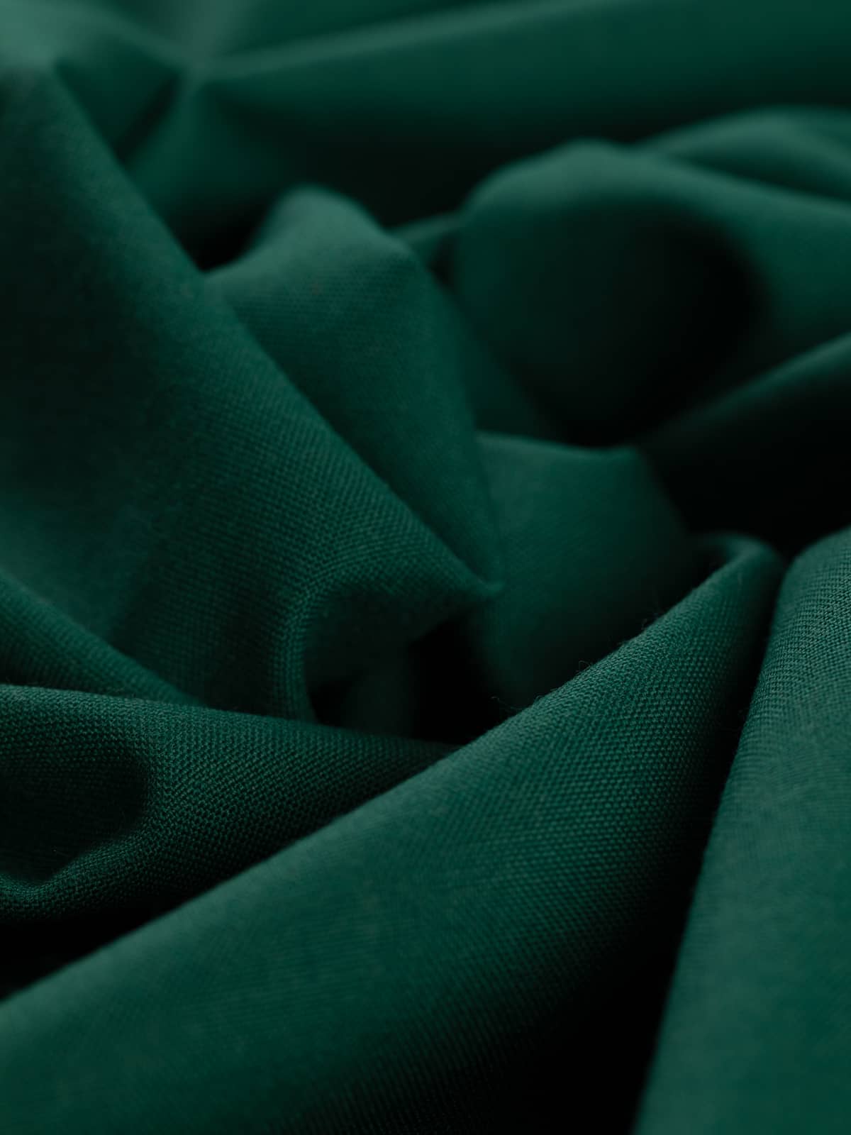 Texture: Heritage Green has an even, fine surface texture, thanks to its close worsted flat weave. The wool content is noticeable to the touch, yet not itchy or irritating. It feels cool initially, but it will naturally adjust to the wearer's body temperature. The polyester content adds durability and makes it easier to care for.