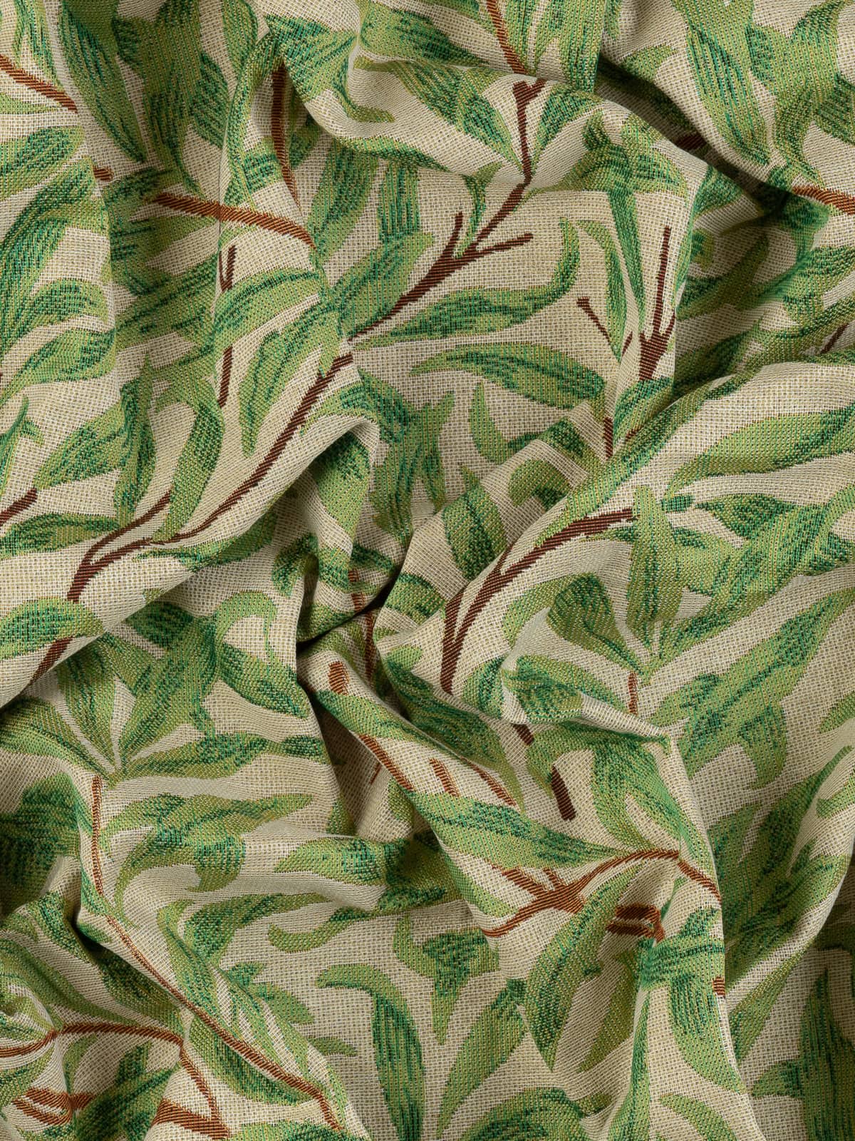 Shades: This spring‑green palette brings freshness and vitality to Willow Bough while preserving Morris’s naturalistic calm. A warm parchment ground, soft cream with the character of aged linen, lifts the composition and allows the rich hazel‑brown stems to anchor the flowing structure. The leaves, in bright spring willow green, feel youthful and sunlit, evoking early‑season growth. Deeper green accents add gentle shading and dimensionality without breaking the natural harmony.