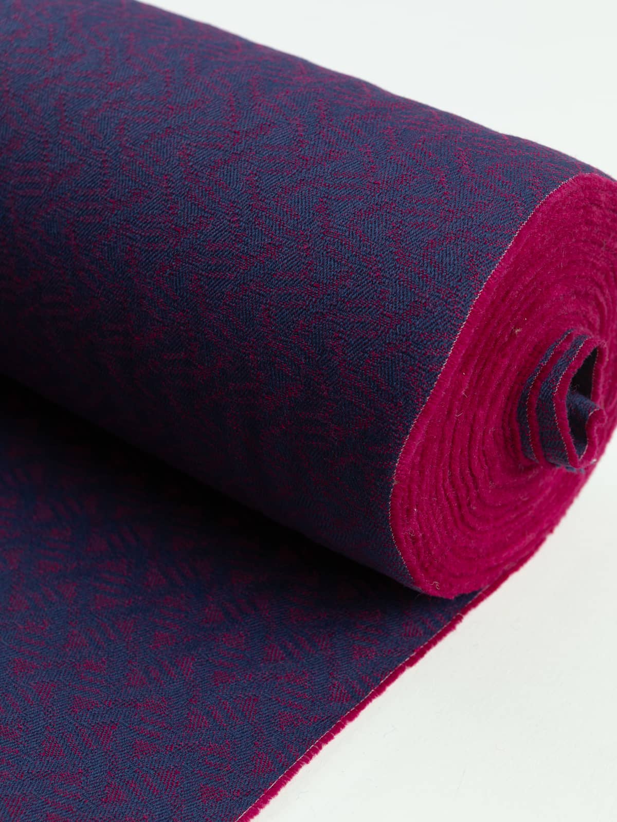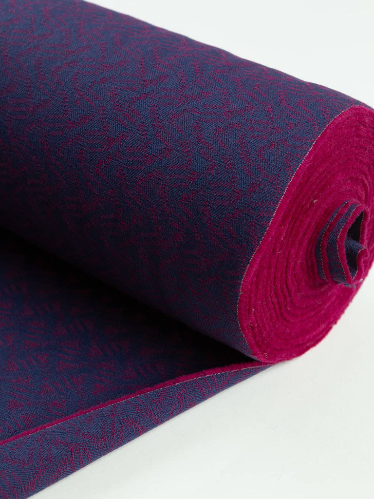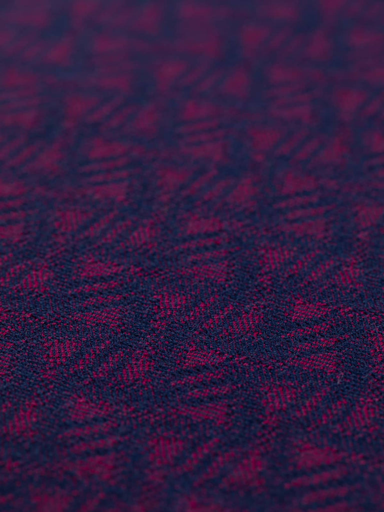Shade: A combination of rich Navy blue and pink purple hues, redolent of the intense tones within a quality Shiraz from the Cape region, are woven together in rhythmic waves evoking thoughts of seafaring voyages of discovery. These rich hues give Cape Wave a serious elegance akin to heritage interiors. Use as a focal point or combine with other tonally compatible hues within this or the other wool furnishing ranges- Scandinavian Wave, Komodo Wave and Seychelles Wave. Create points of interest, picking out the individual magenta and navy-hued fabrics in the whole range.-