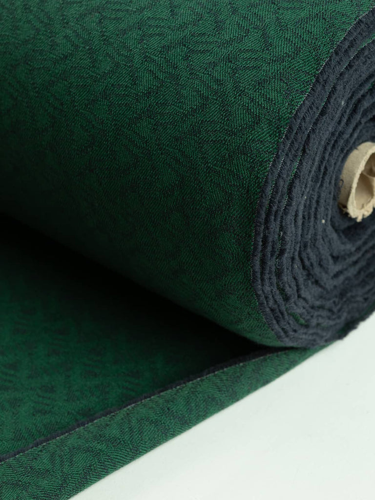 Shade: A combination of dark seaweed green and darkest navy hues, reminiscent of turbulent oceans, gives Poseidon Wave a depth and serious elegance akin to 1930s interiors. Use as a focal point or combine with other tonally compatible hues within this or the other wool furnishing ranges- Oceanus Wave and Santorini Wave. Green palettes are calming and restful, and are ideal for creating areas of quiet contemplation. This colour combination fabric has an antiquarian heritage style.