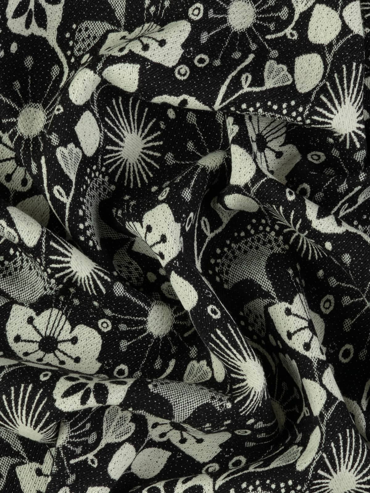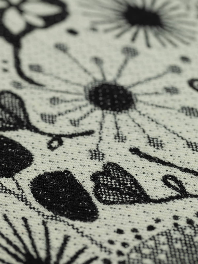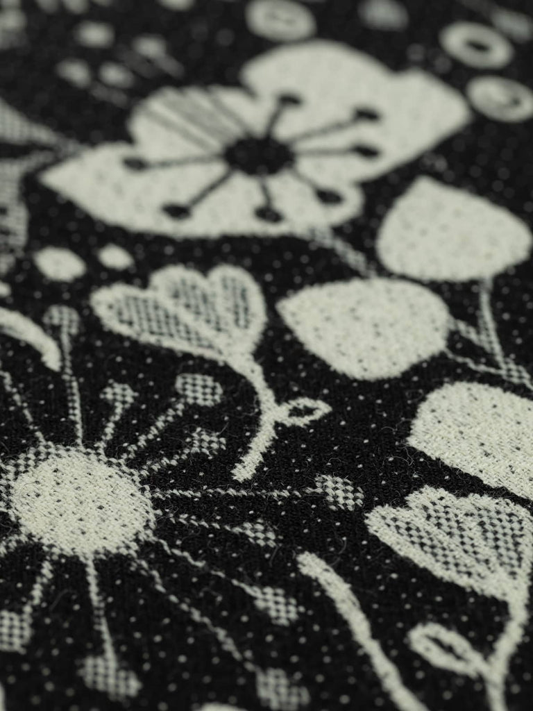 Design: A masterfully woven double-sided jacquard design featuring stylised seed heads, flowers, sunbursts and other imaginative nature-inspired motifs.