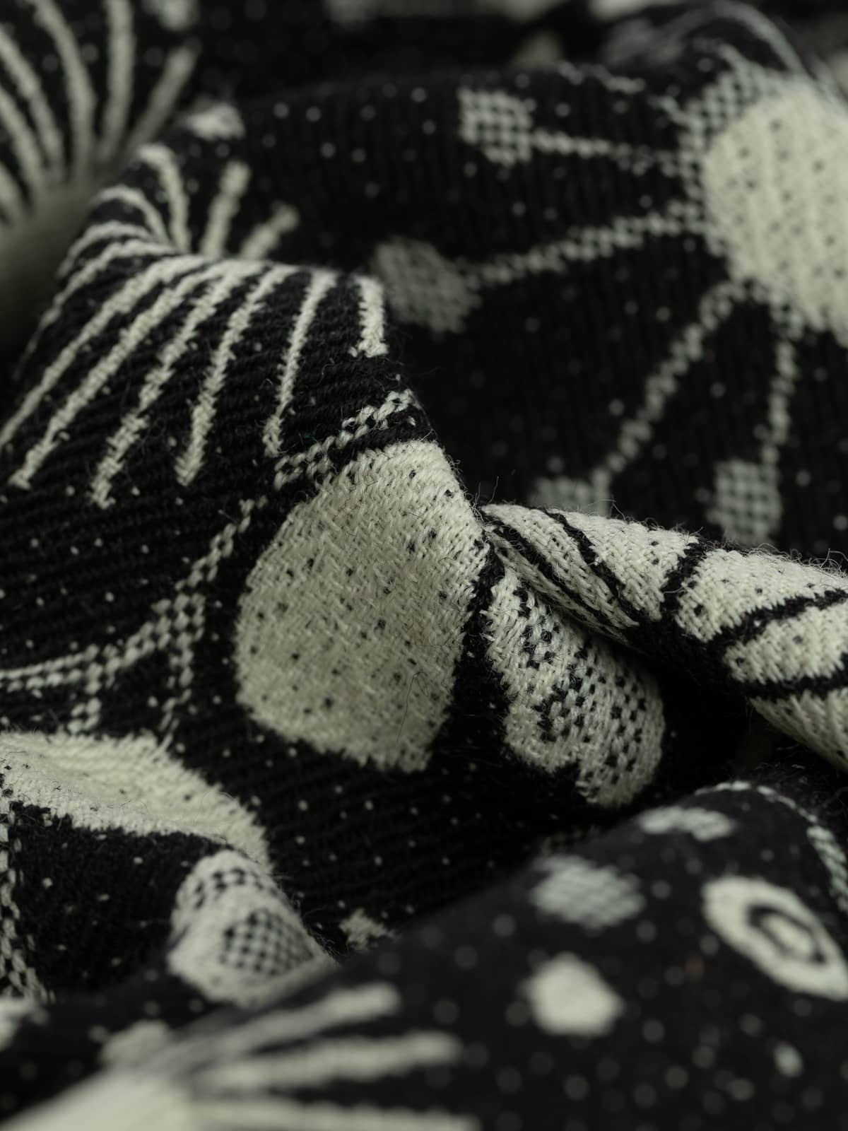 Shade: A wonderfully pleasing monotone black and natural- beige wool colour combination. Choose your dominant colour tone(and side), Coal or natural beige, and create eye-catching colourful detail wherever you need the emphasis of bold colour and design. Team with solid beige or deep pink, or create a rainbow of interest using all the colourways.