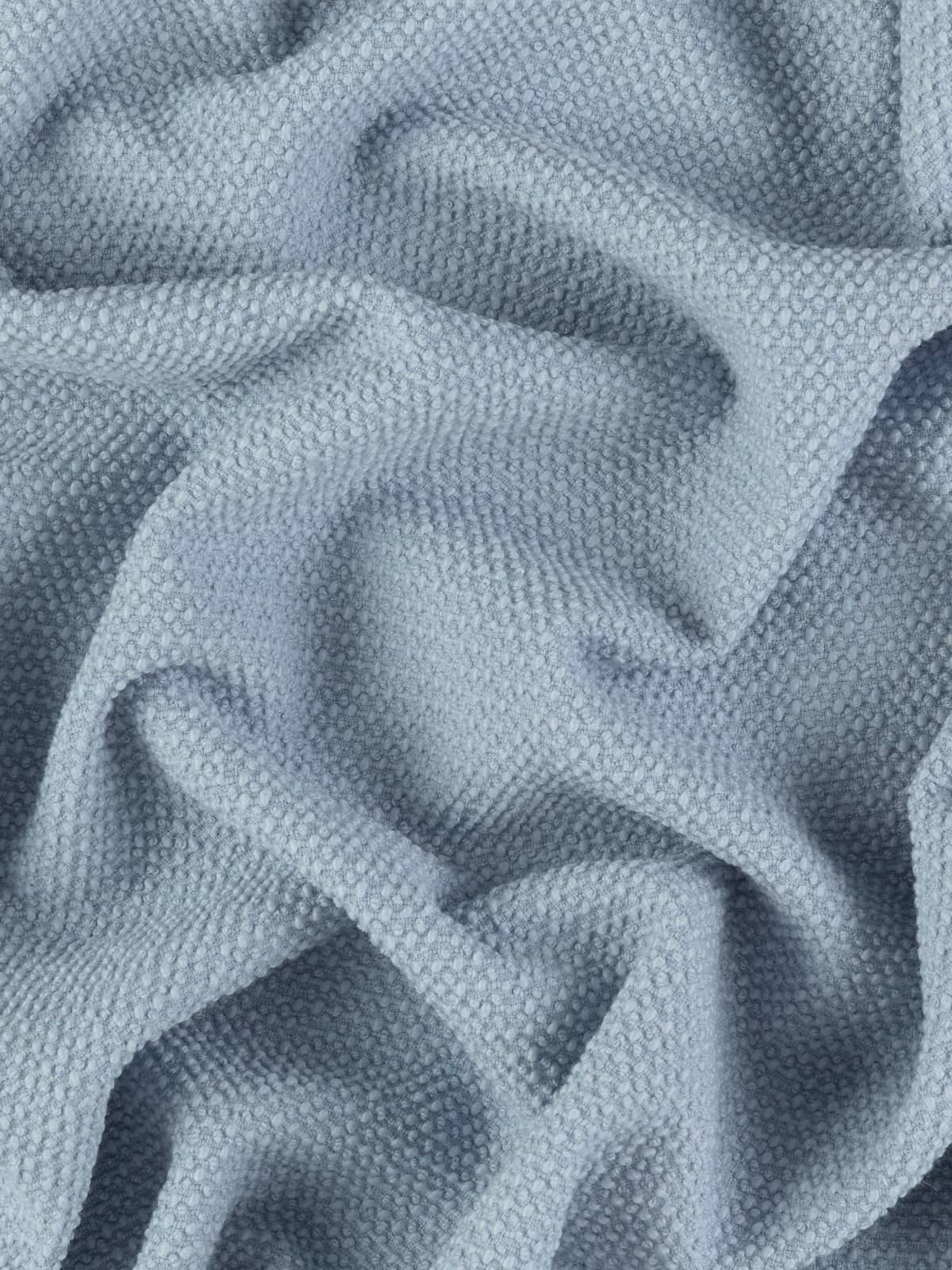 Shade: A beautiful light blue tone of Ballad Blue. This classic light, almost faded vintage sky-blue hue has lustrous silver tones that highlight the boucle bobbles akin to fluffy cirrocumulus clouds in a summer sky. Use this "light as a ballad," blue, as the starting point for your inspiration. Produce a harmonious palette and team with similar all your favourite cool blue/grey hues: Dusk Blue, Adriatic Blue, Lunar Rock.