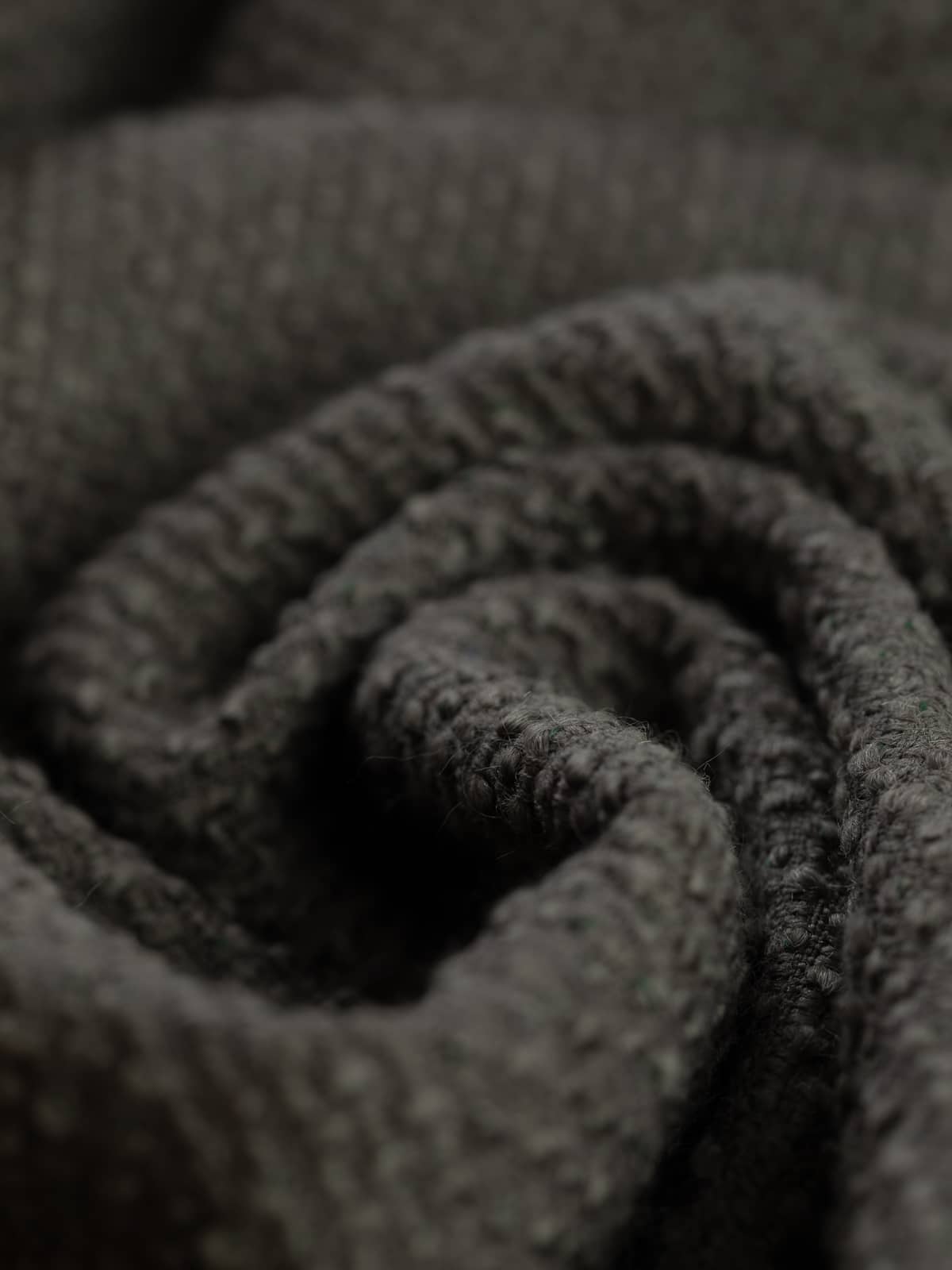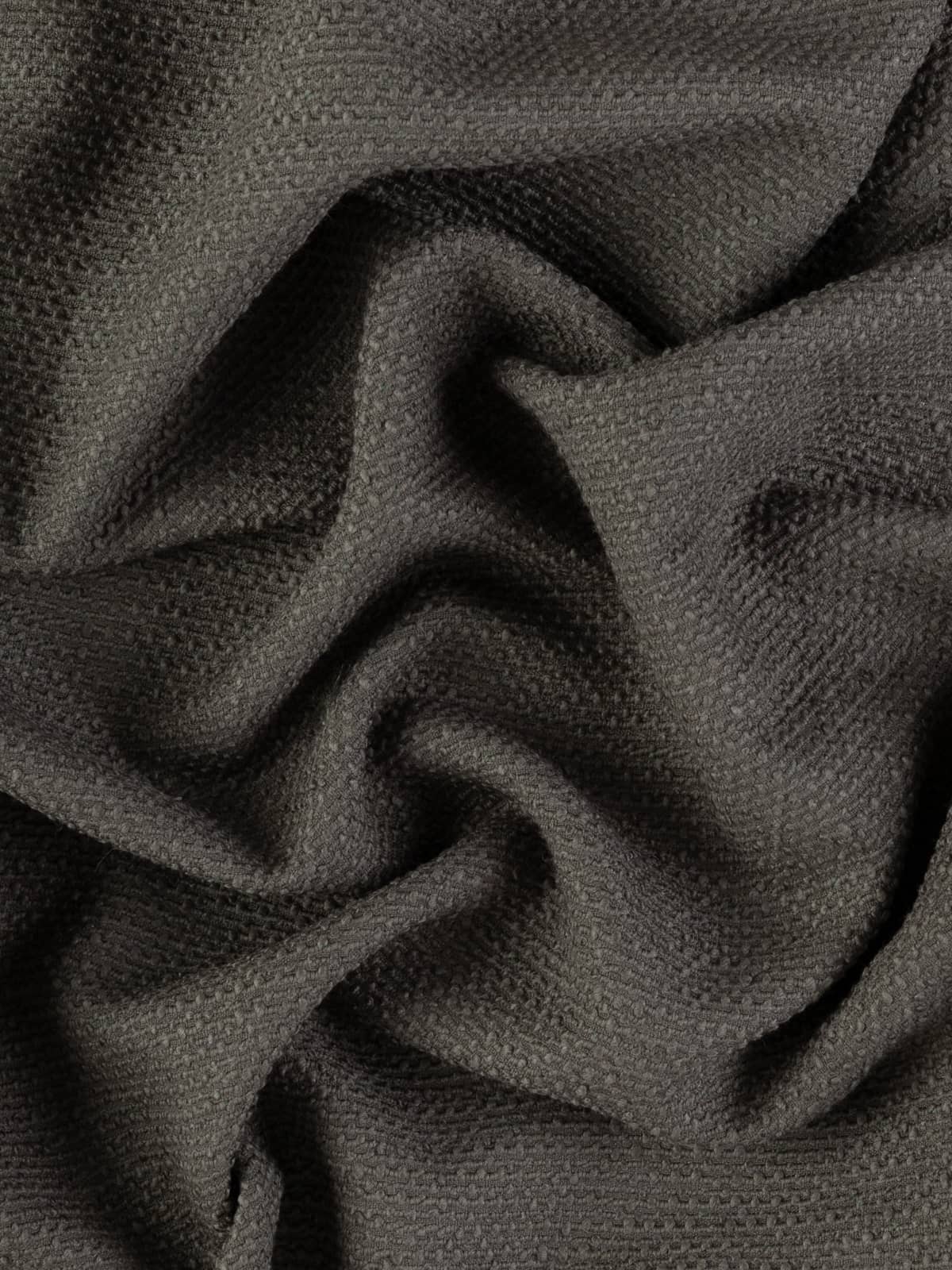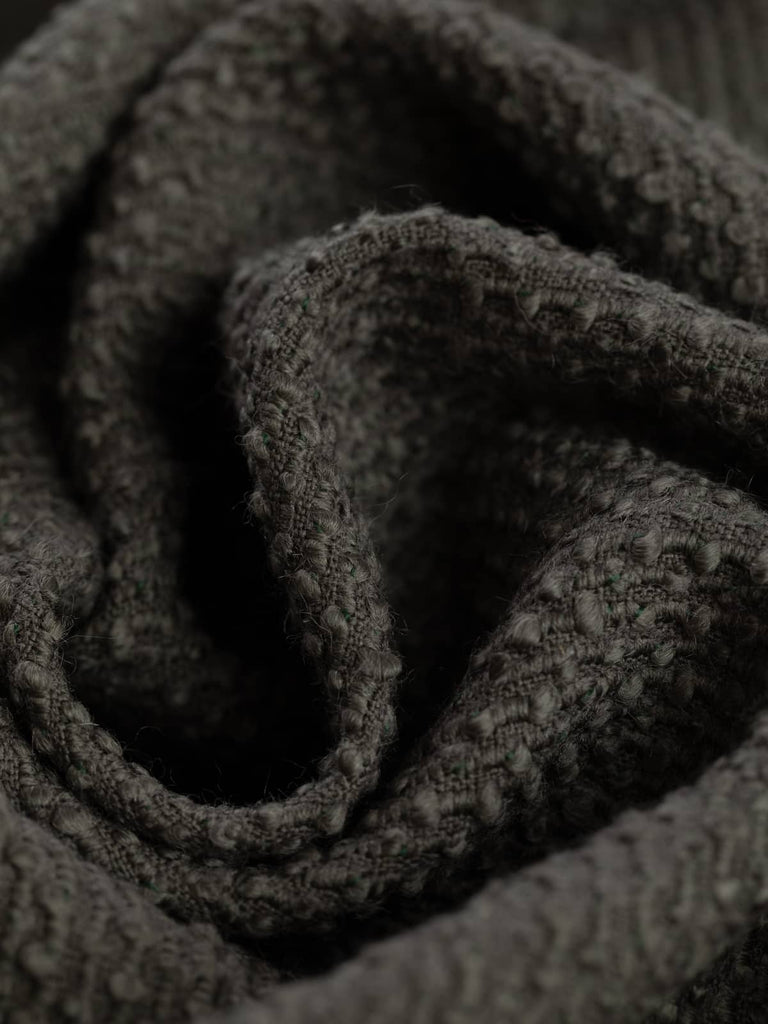 Texture: A richly textured wool and mohair blend offers a structured yet soft finish, characterised by rhythmic, raised bouclé detailing across the face. The reverse side is flatter, with a smoother hand. The reverse is less textured as the bouclé bobbles only show on the face side.