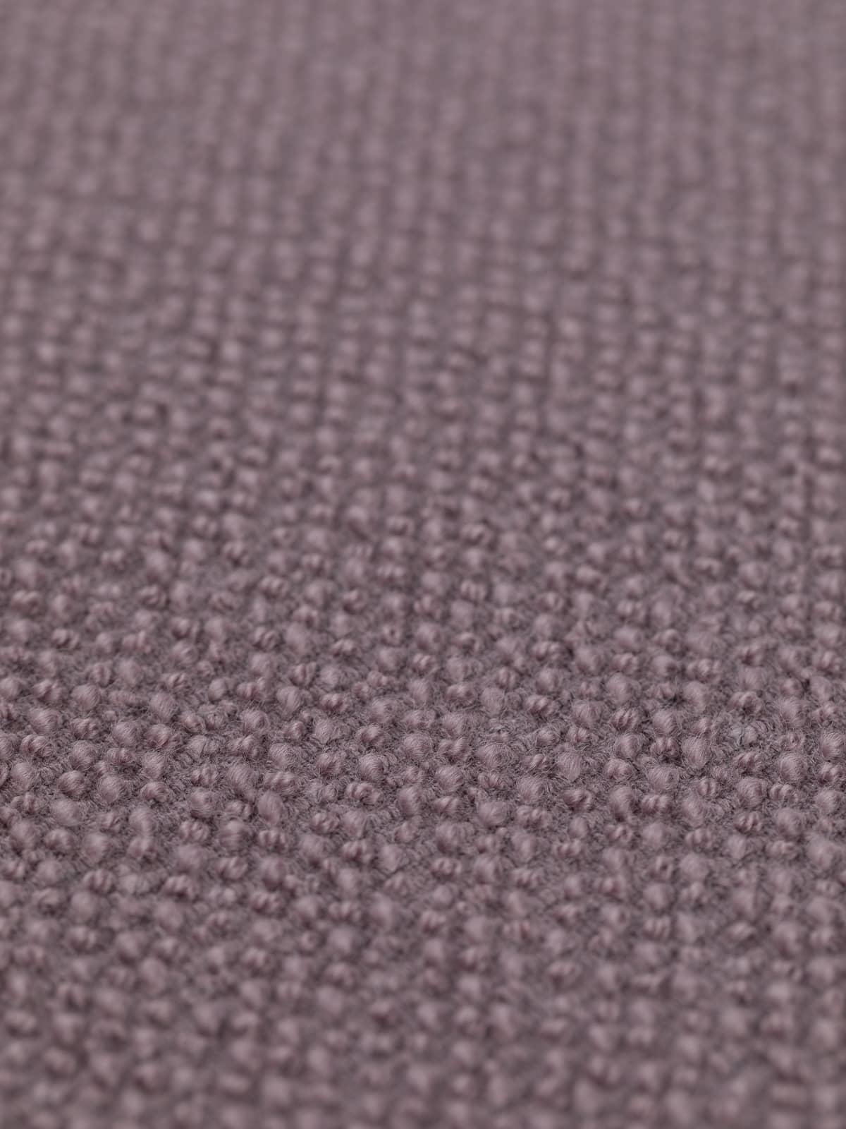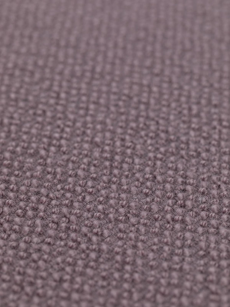 Shade: A subtle tone of muted purple akin to faded or Dusty Lavender. This gentle purple-based mauve hue has grey undertones, creating depth and interest alongside the boucle texture. Use this as the starting point for your inspiration, or produce a harmonious palette and team with similar favourite cool mauve-grey hues: Lunar Rock, Regal Amethyst. Alternatively, create a palette with jewel hues akin to a damsel fly with its purple-green iridescence, and place it with Adriatic Blue.