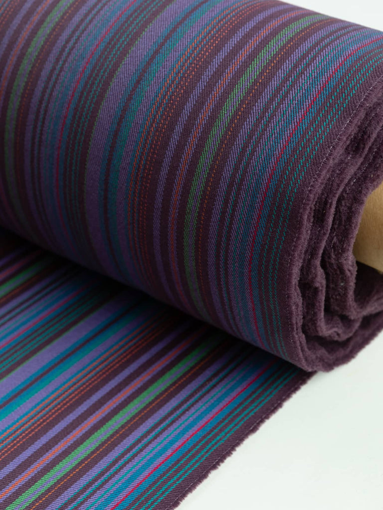 Design: This impeccably woven wool fabric boasts a design of repeating vertical stripes in groups of complementary hues spread across the width. These mesmerising stripes are ideal for creating focal points with visual impact.
