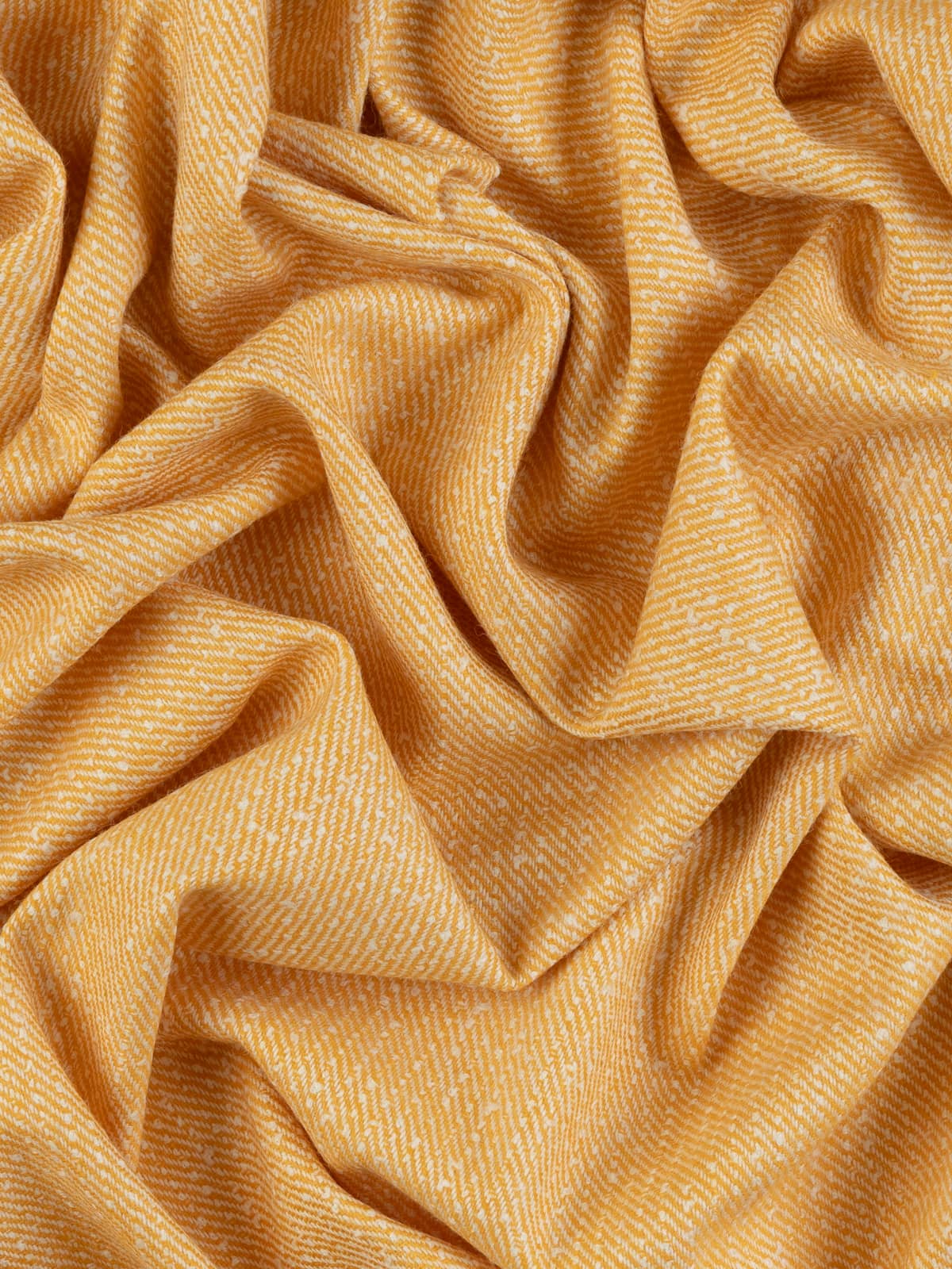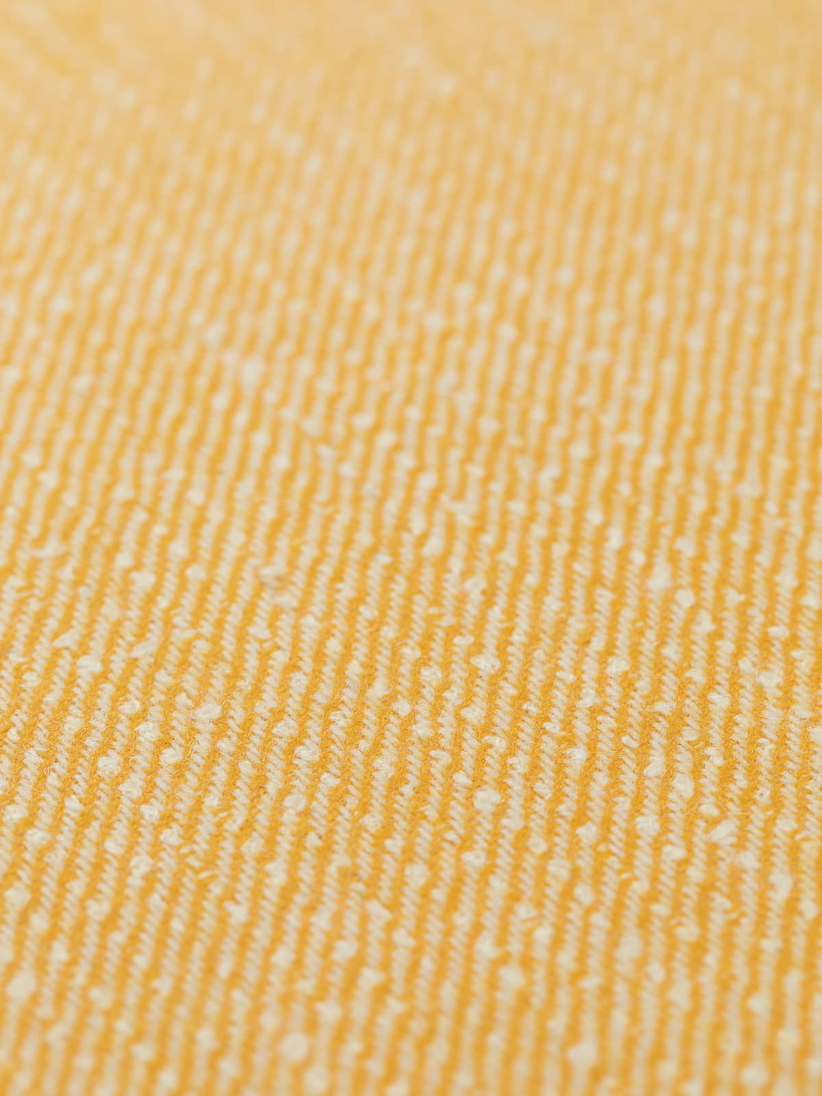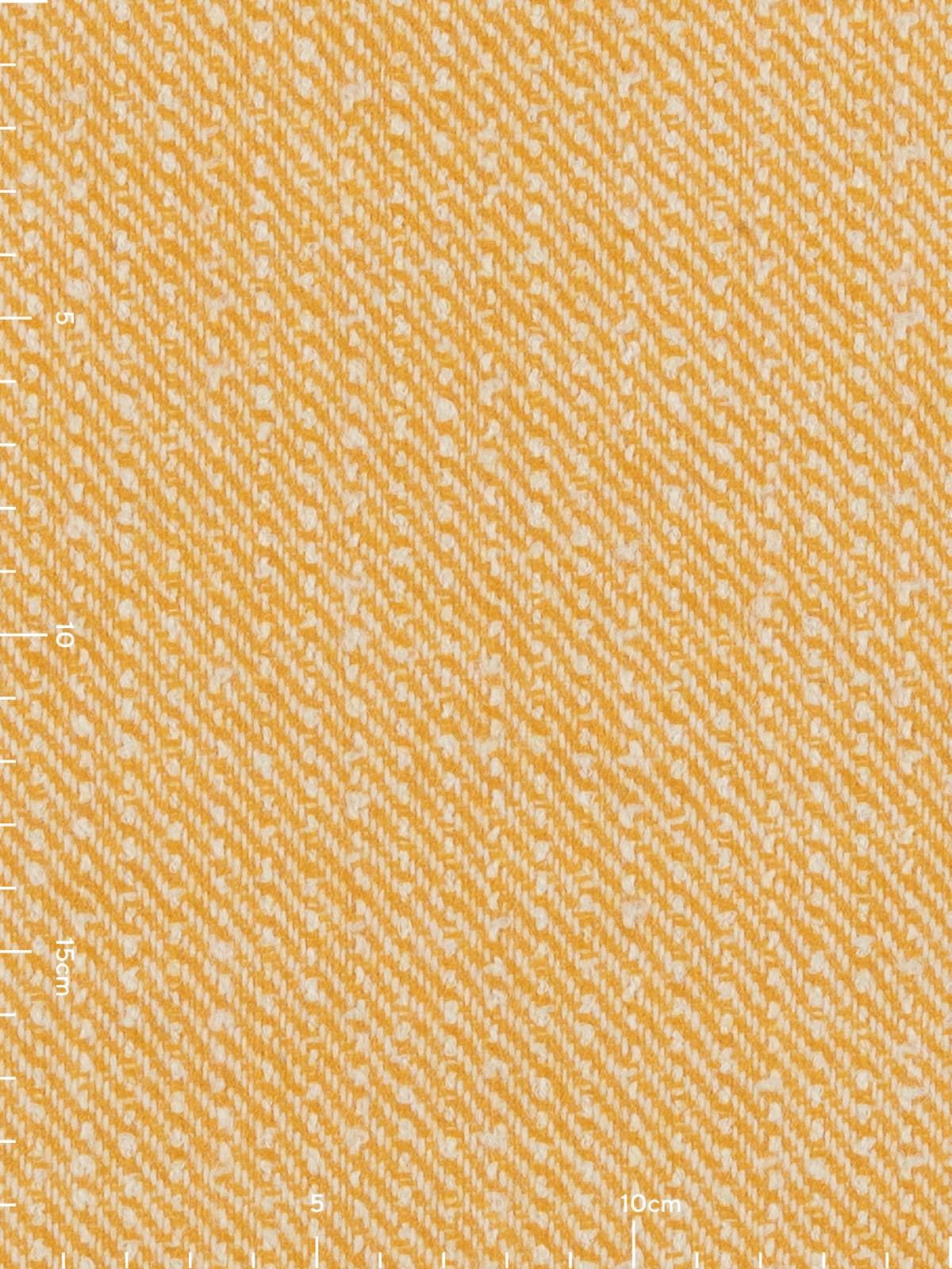 Design: Classic twill construction with alternating cream and golden Barley Sugar yarns forming the diagonal rhythm. The bouclé warp enhances the twill geometry, adding texture, depth, and subtle surface animation while maintaining a polished, couture-style finish. The result is a fabric that feels rooted in heritage craftsmanship yet unmistakably modern.