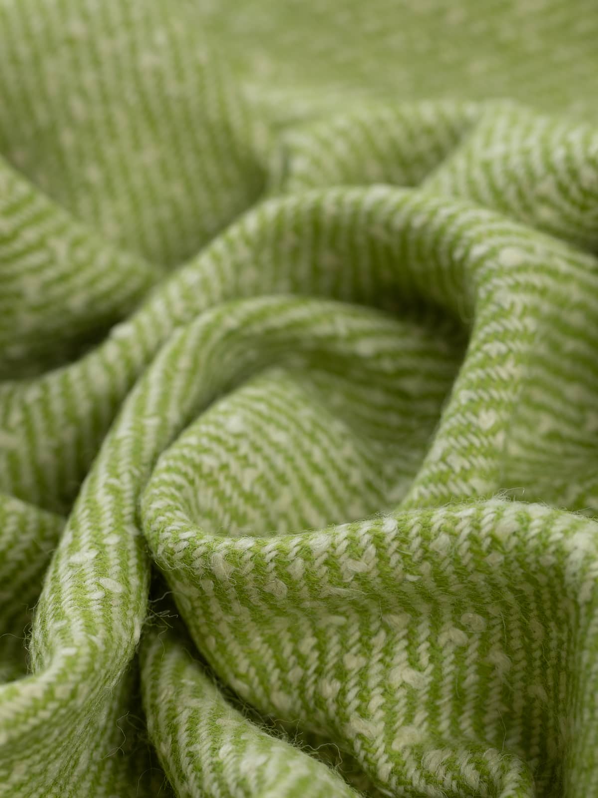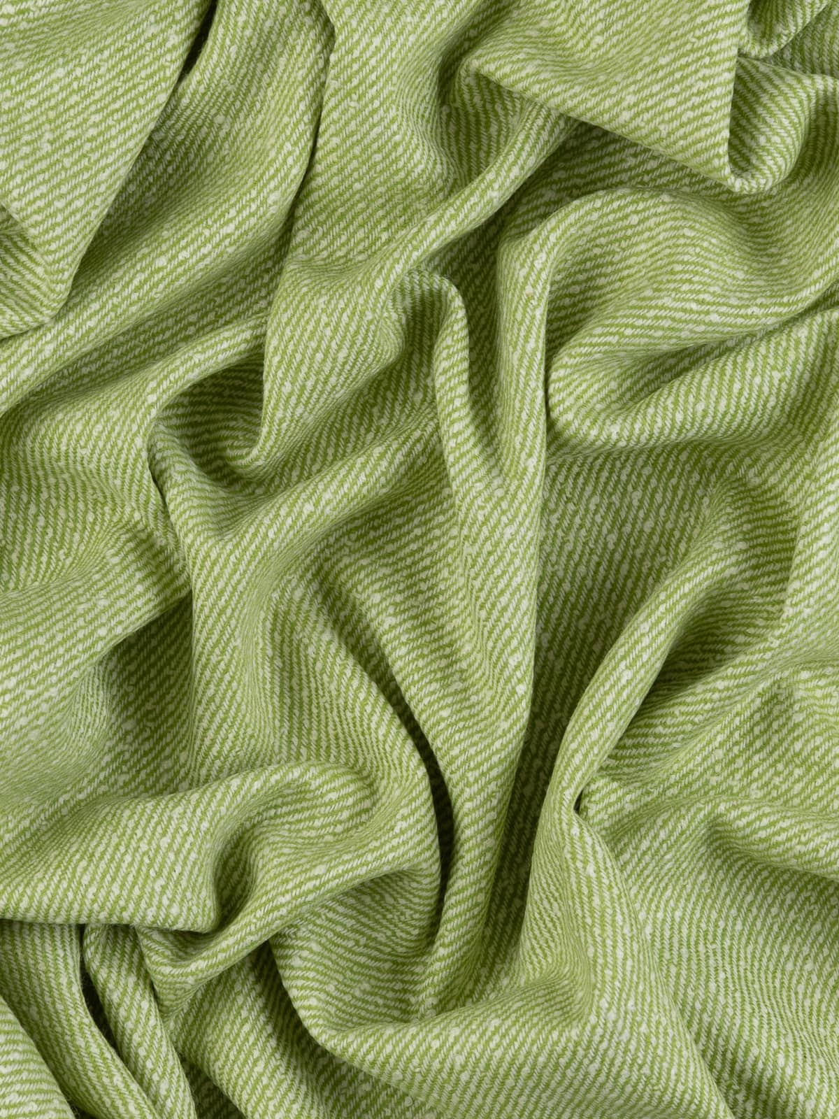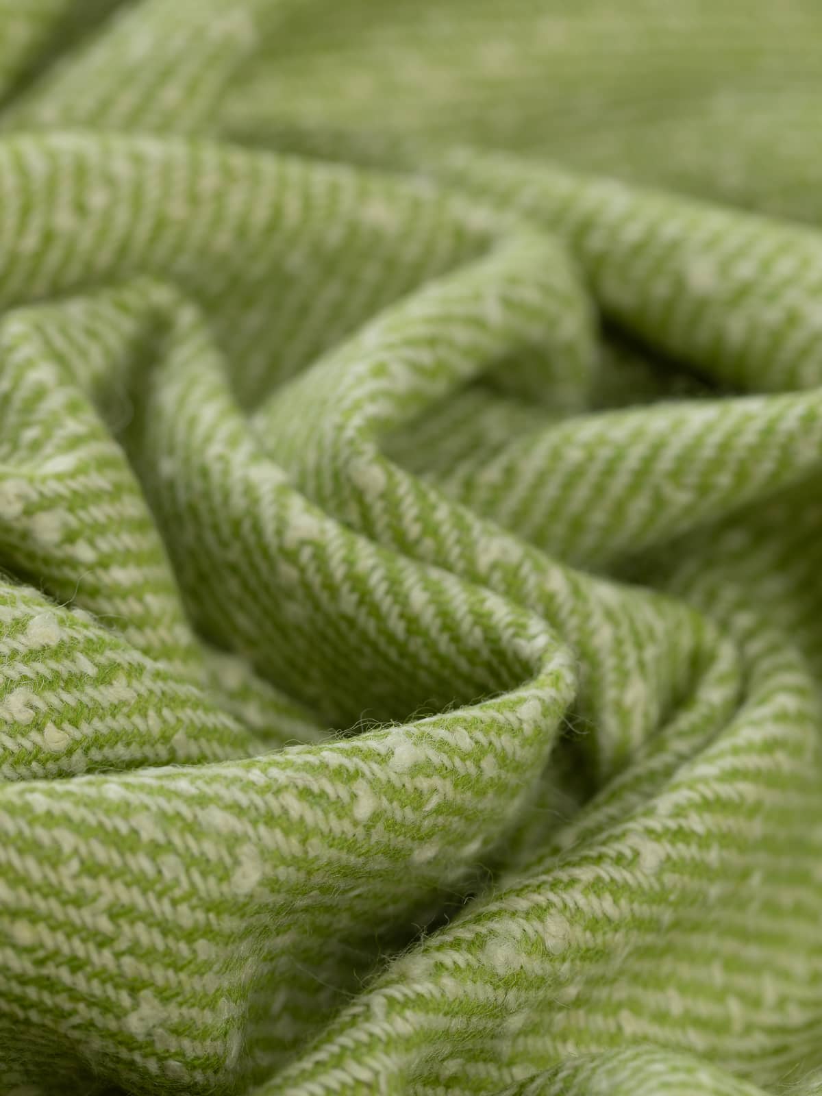 Shades: Alternating yarns in natural Sheep’s Fleece cream and zingy lime green create the characteristic twill diagonals, producing a lively, candy-stripe effect. Flashes of citrus brightness energise the surface, while the soft cream ground keeps the contrast controlled and wearable. Fresh yet nostalgic, the palette is redolent of heritage sweetshop favourites.