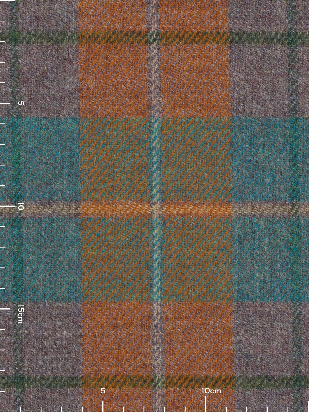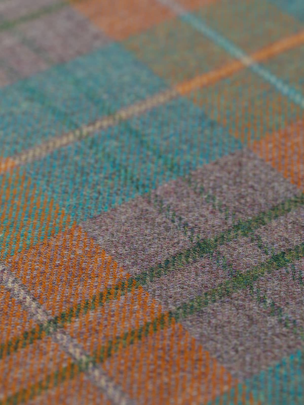 Design: Traditional Yorkshire tweed plaid in twill construction, with layered warp and weft combinations producing nuanced texture, depth, and subtle movement. Accent bands interact gently with the base checks, echoing natural moorland patterning.