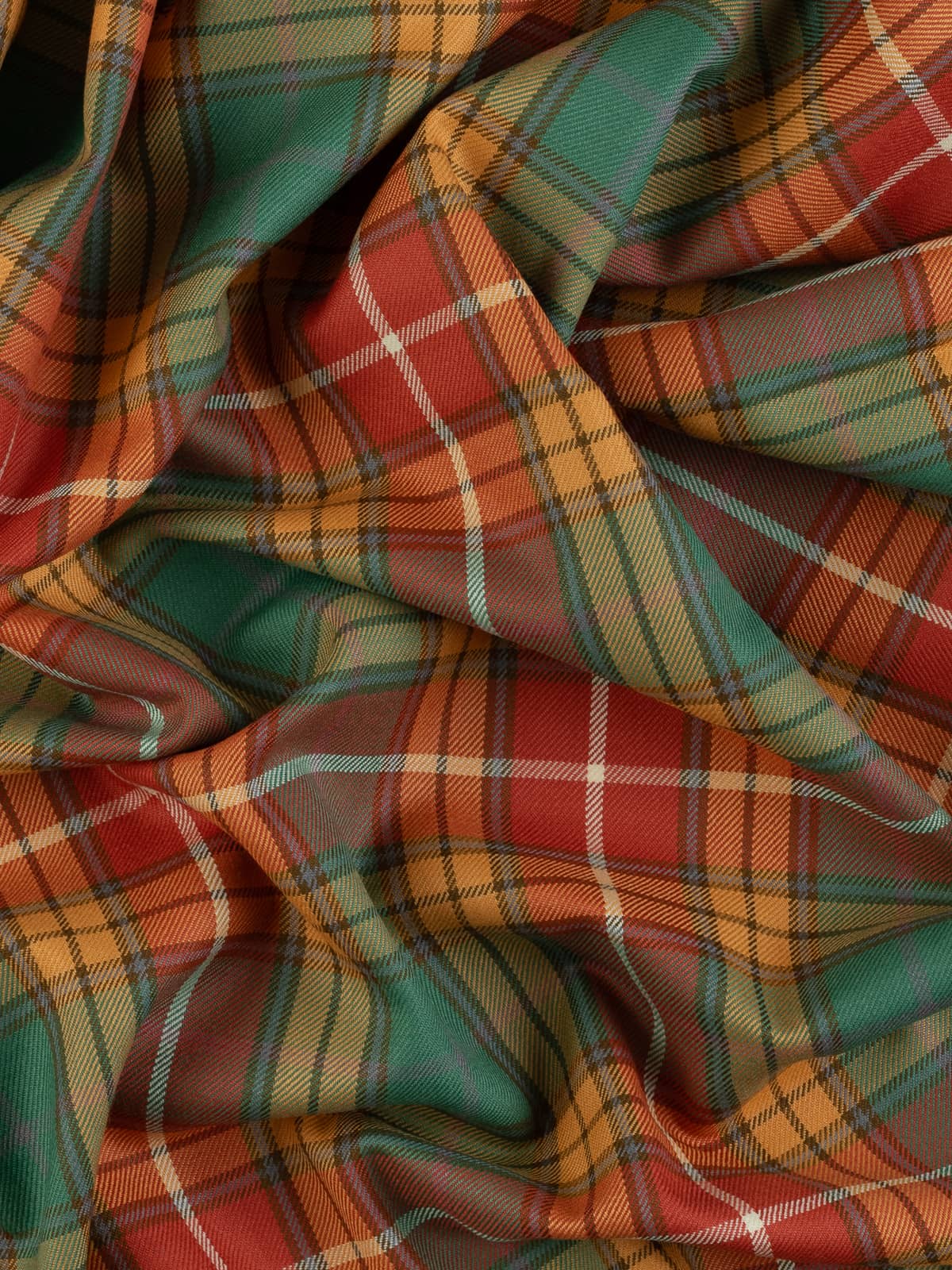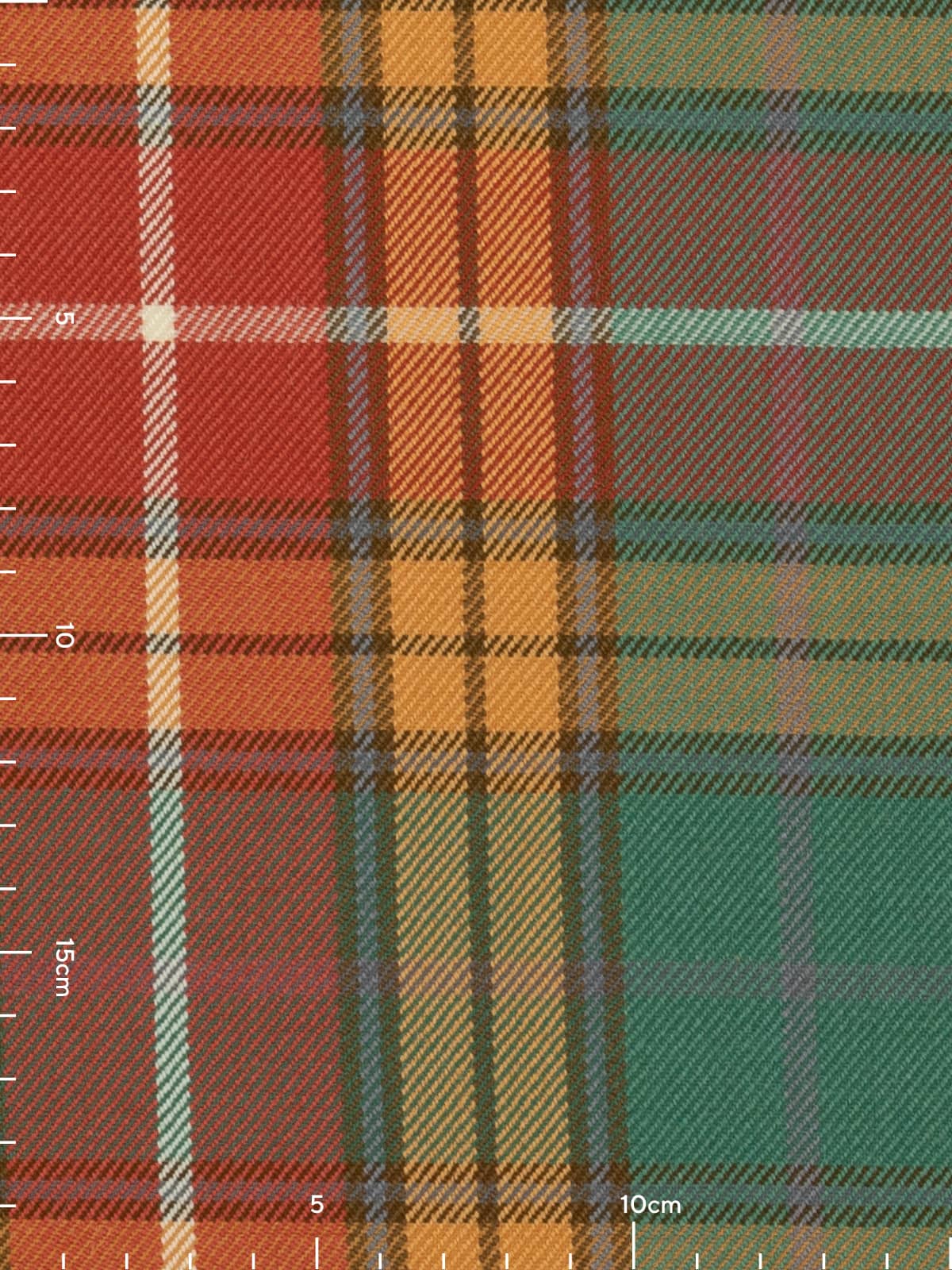 Drape: In addition to holding crisp details, this fabric drapes with a reassuring weight, ideal for bias cuts, flares, and flounced designs. The tartan sett can be cleverly used to create striking focal points in bespoke garments and creative pieces.