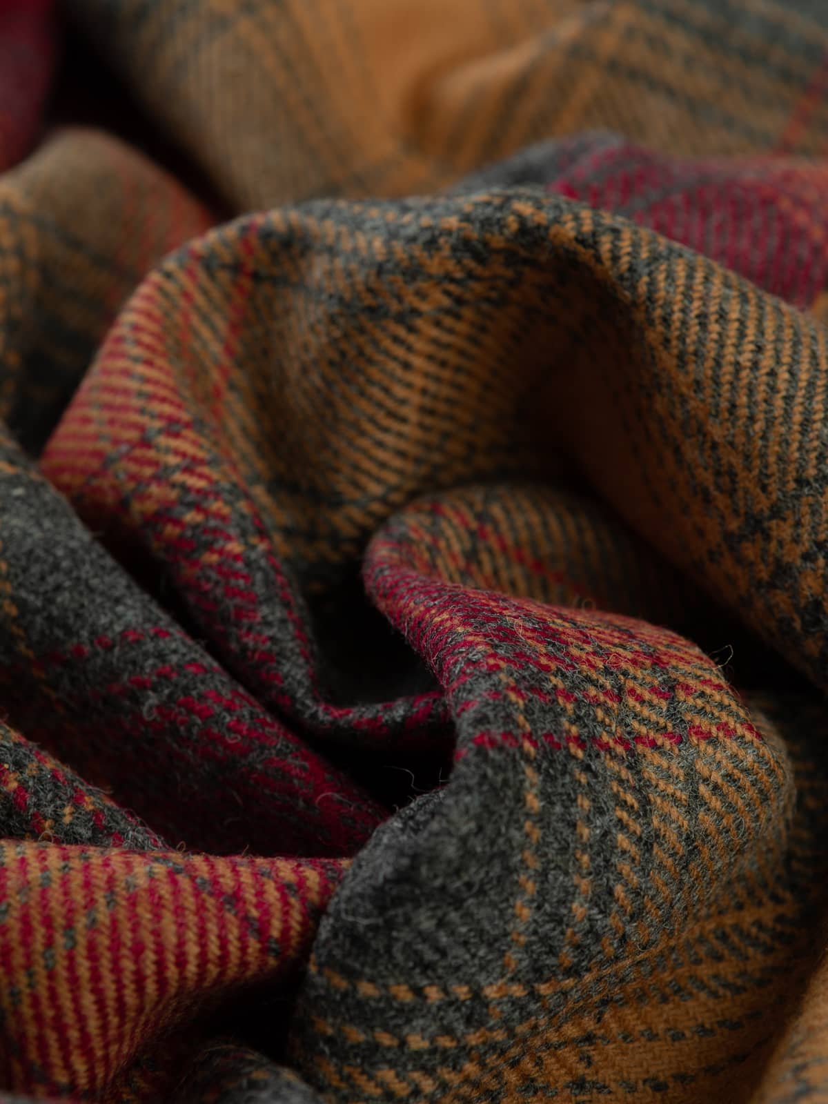 Design: A twill-woven plaid where each intersection of colour creates beautifully subtle nuances. The layered hues work in harmony, producing depth and movement across the surface, a visually engaging pattern that remains classic yet characterful.