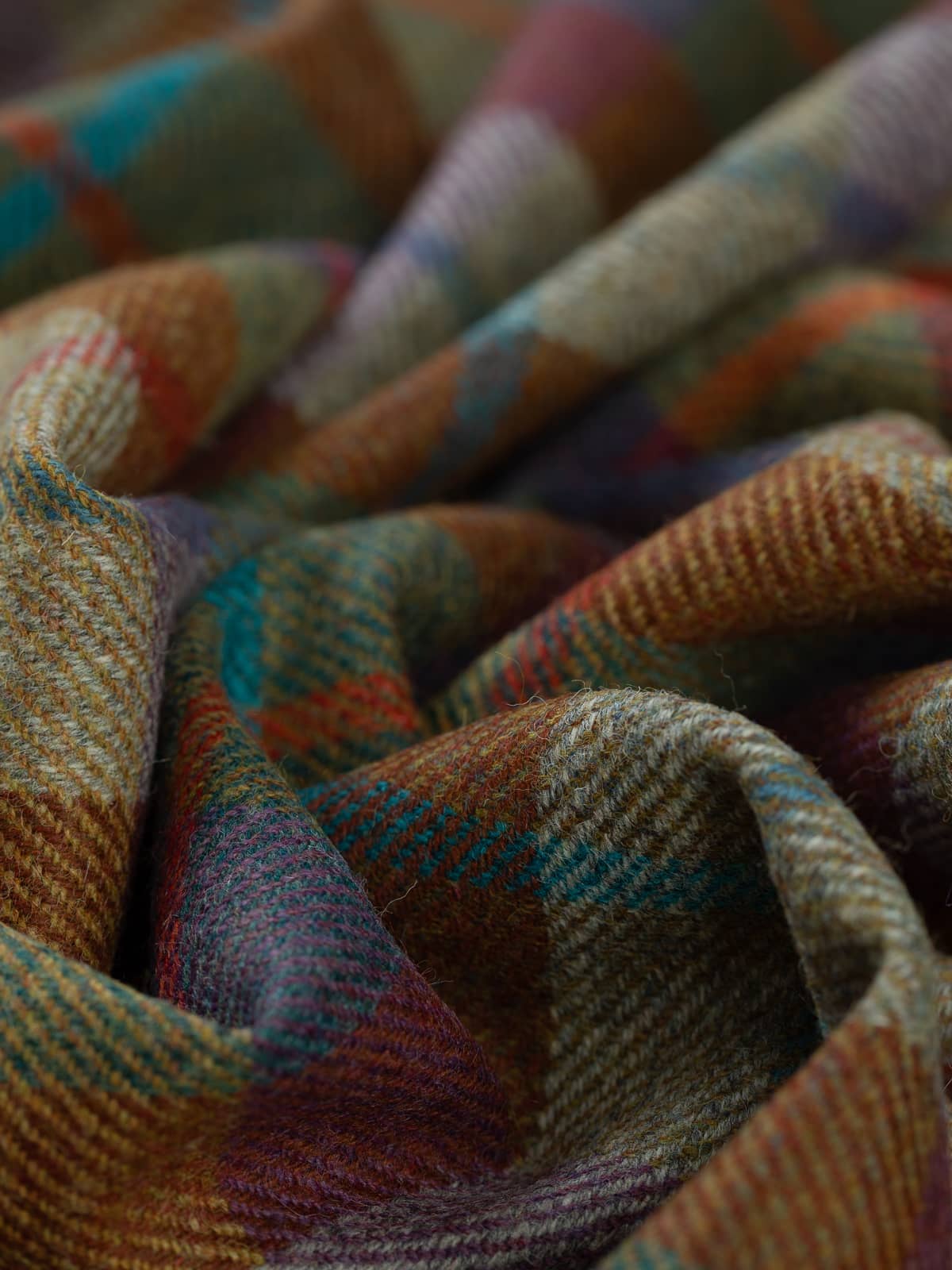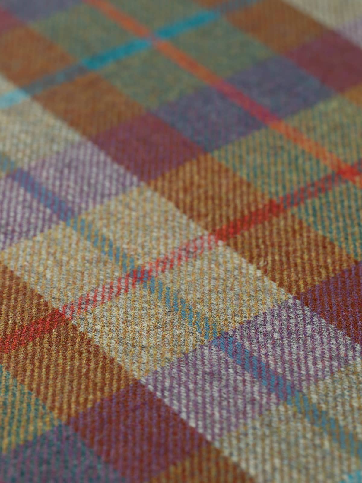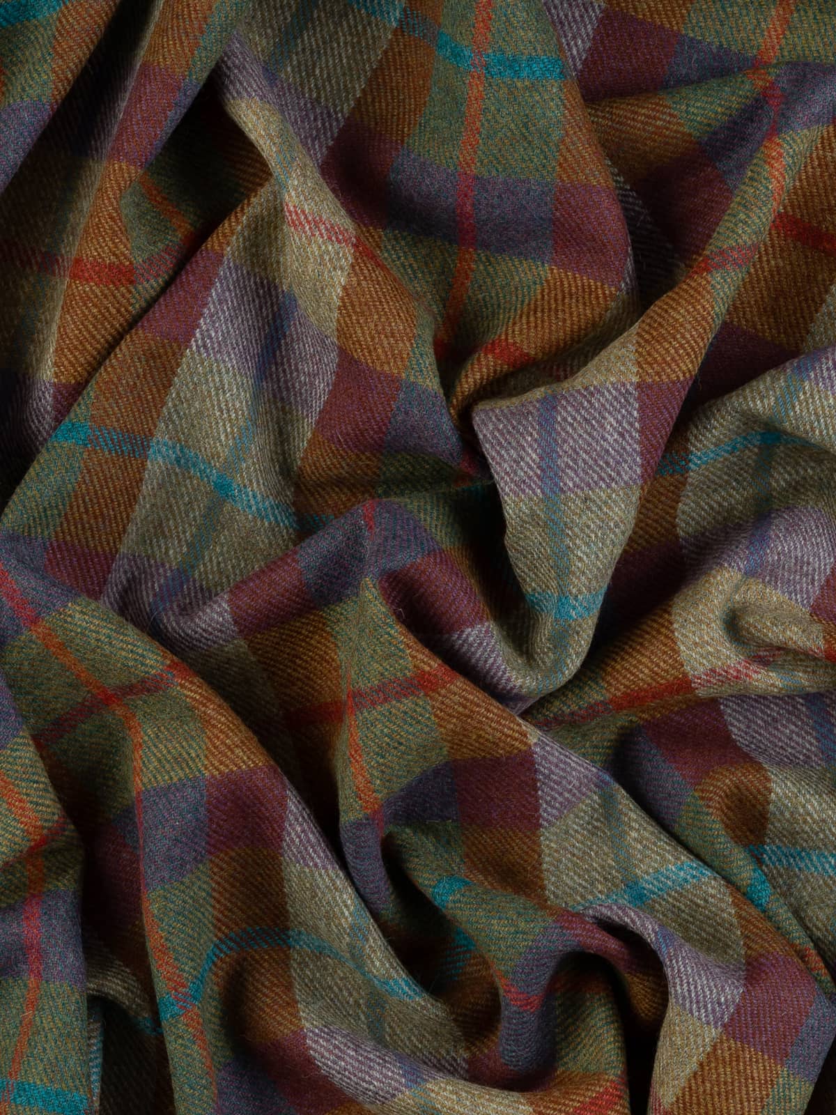 Design: A twill woven plaid where each intersection of colour creates beautifully subtle nuances. The layered hues work in harmony, producing depth and movement across the surface, a visually engaging pattern that remains classic yet characterful.