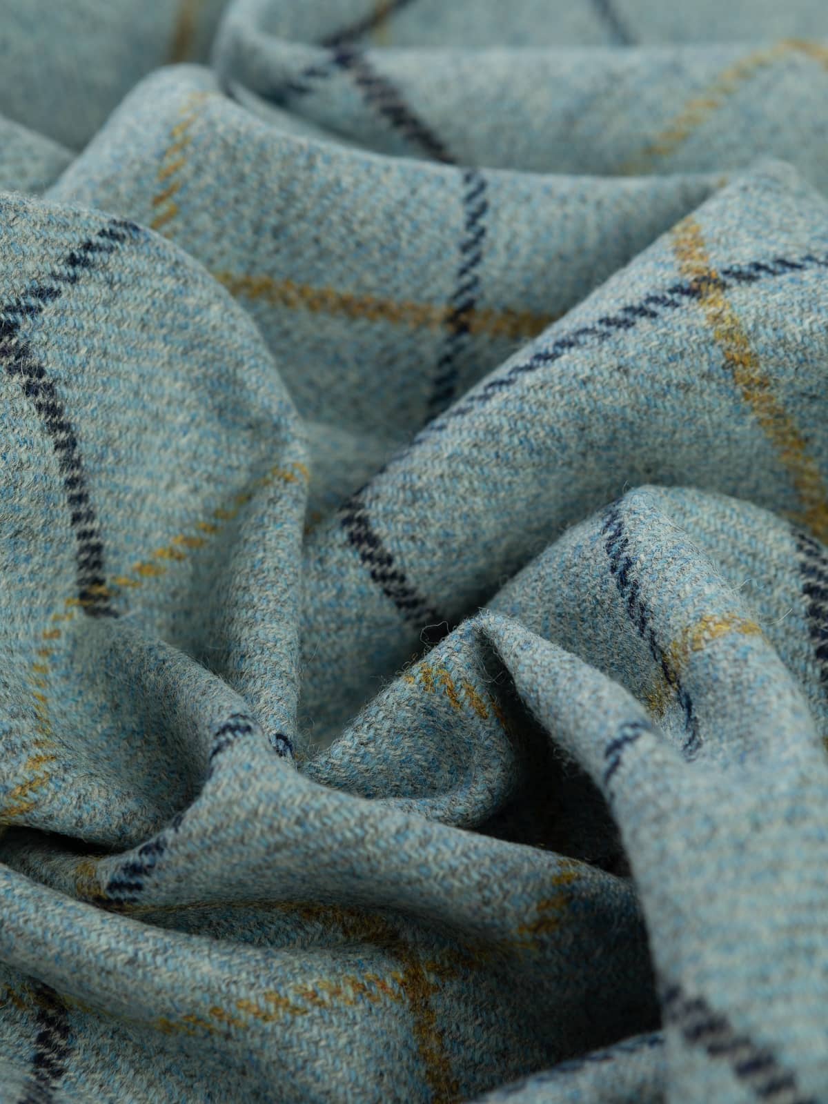 This quality woollen belongs to a collection made by our HoH weavers, a delightful new selection of Yorkshire Tweed Windowpane Checks in heavenly colours inspired by nature and featuring a marled grey warp throughout, plus the feature of accent hued windowpanes throughout the whole collection. Each boasts an individual accent or view.