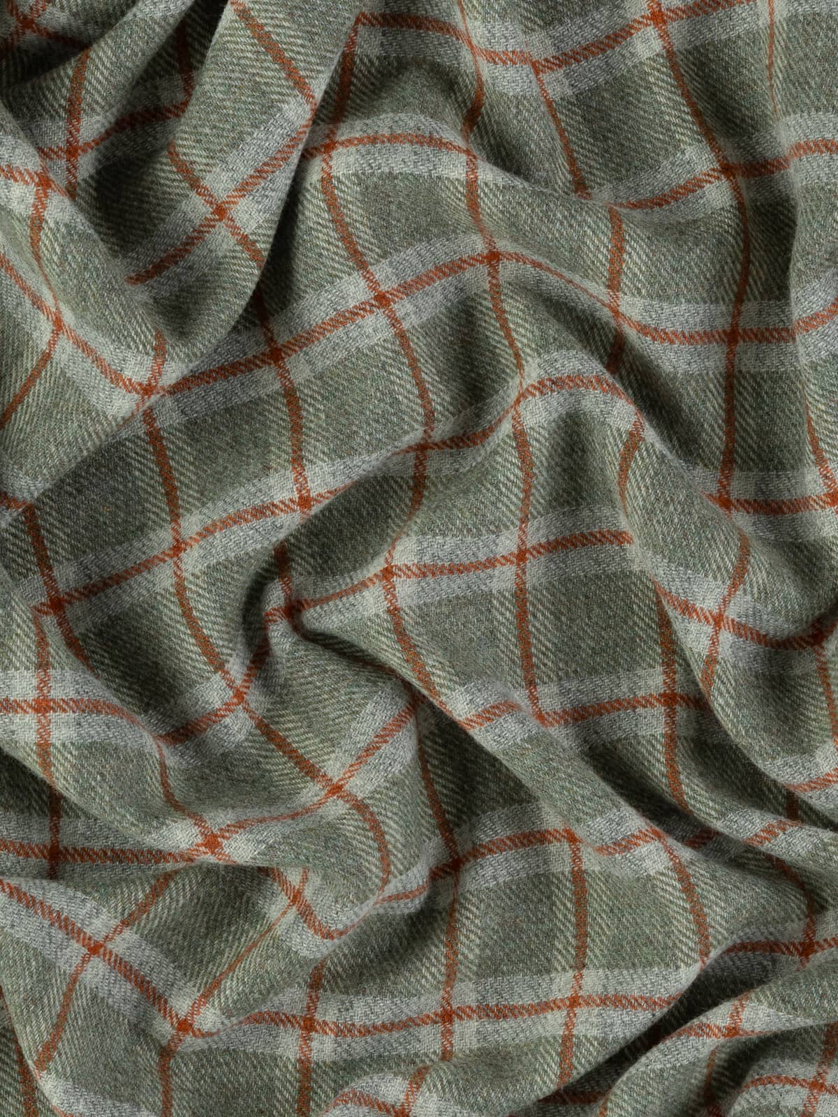 Style: This smart check has a classic rural style that is easily at home in modern apparel or decor. The cedarwood check evokes natural warmth, while the earthy green hues soften the grey base, and cedarwood lines lend order and refinement.