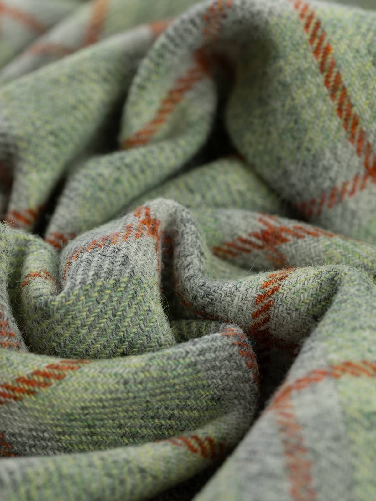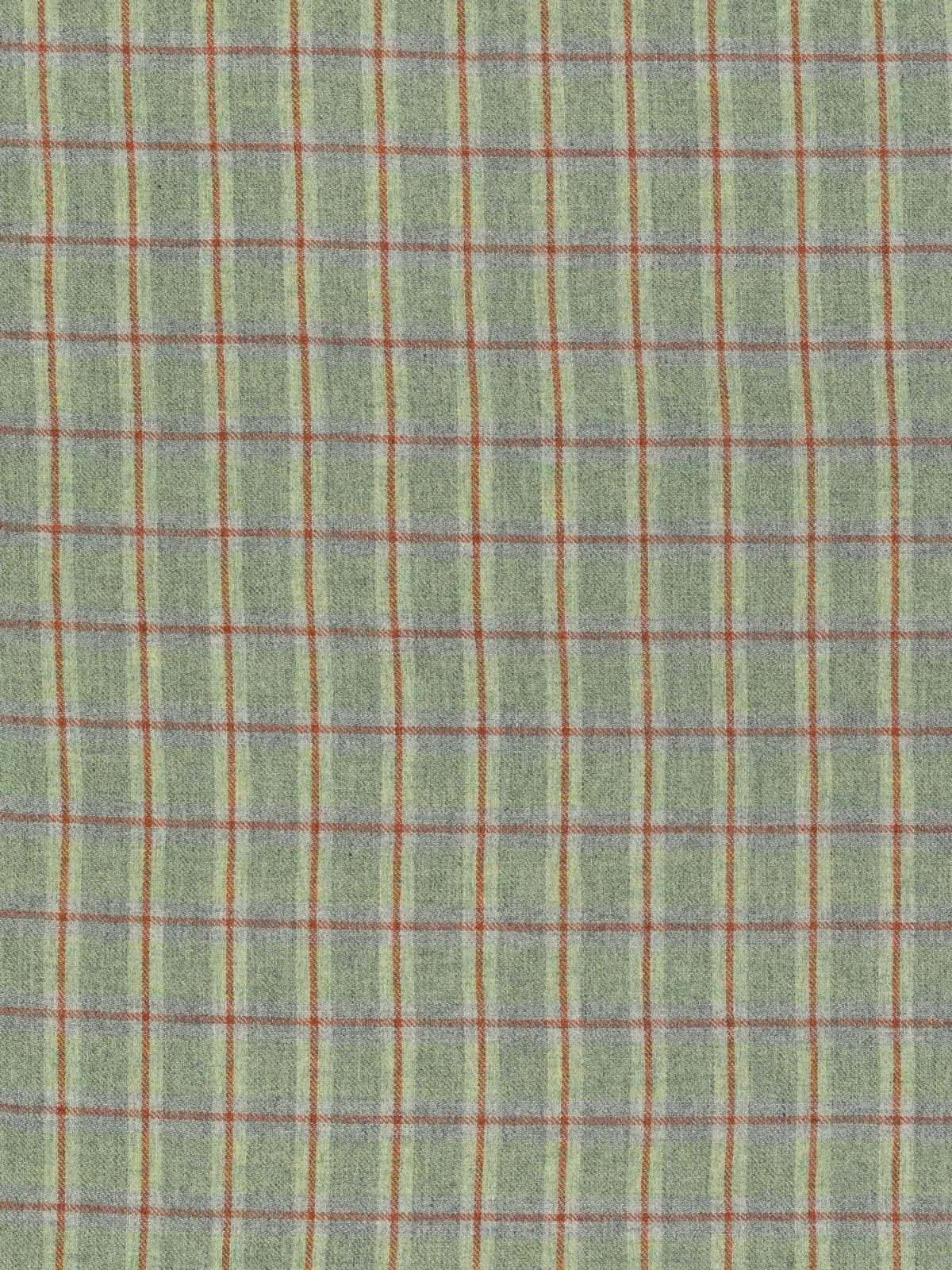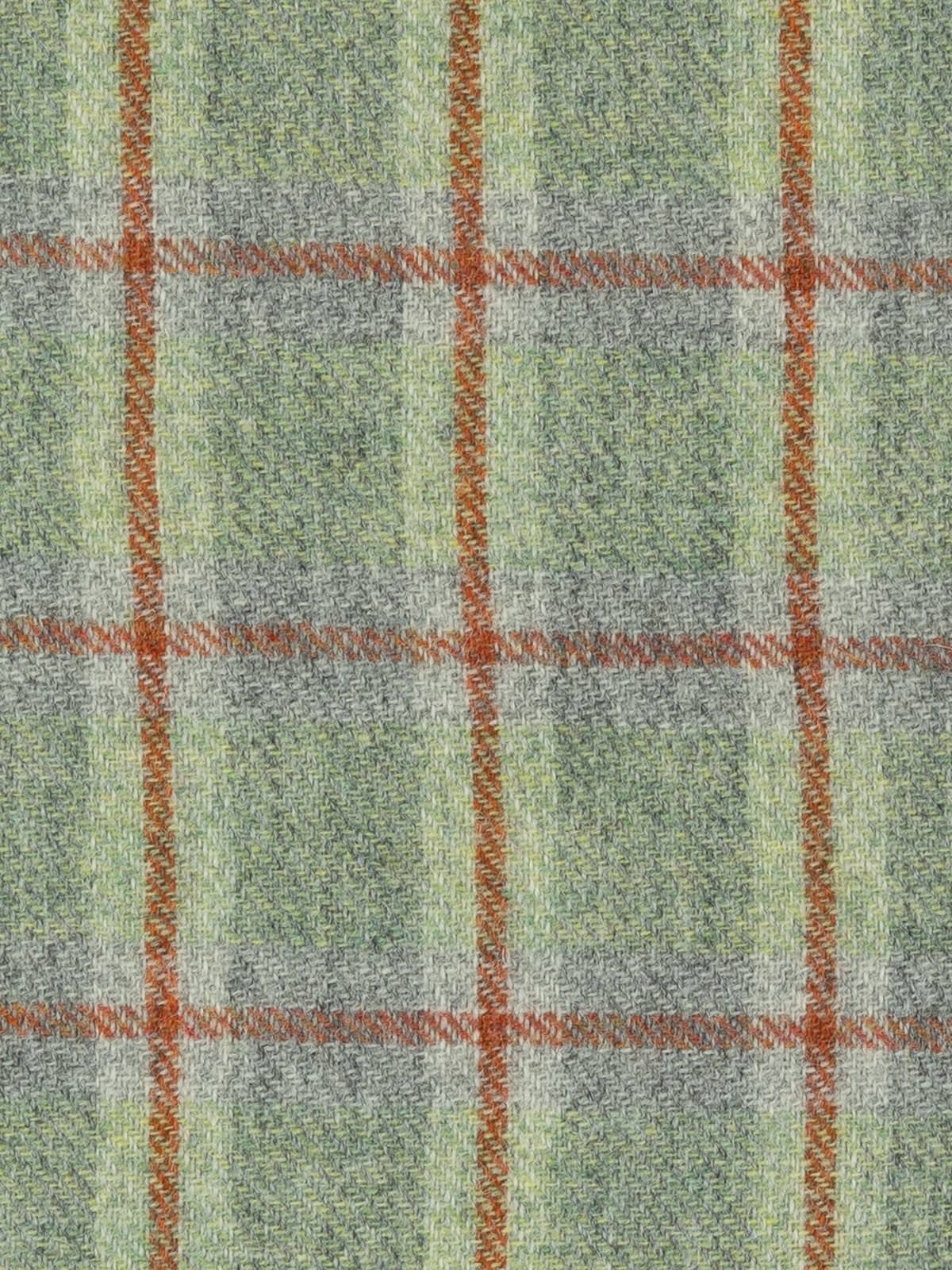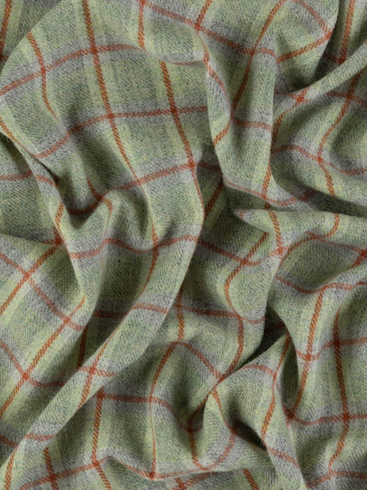 Shades: Shore View captures that meeting of land, sea, and sky in a tactile, woven form and takes its colour palette inspiration from the view through a steamed-up window, where the cool water hues of a springtime shore predominate. A melange yarn of translucent spring/seaweed green ripple through the base, recalling the movement of tideweed beneath clear shallows or fresh spring growth along a shoreline. The frosted grey flanks the cedarwood accents of the windowpane overcheck and suggests weathered coastal stone and misty horizons. The Cedarwood (red-hued brown) overcheck adds structure and warmth and contrasts with the cool greys and greens, balancing earthy warmth with coastal freshness. Like all the fabrics in the collection, marled grey unifies the design with a characteristic tweedy heritage style.
