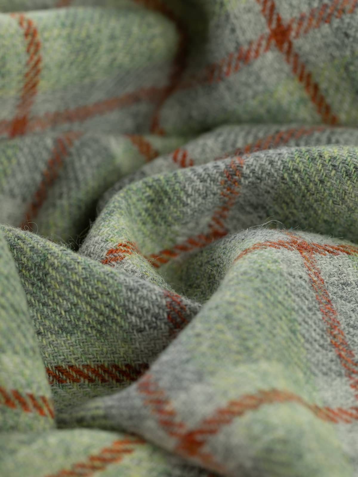 This quality woollen belongs to a collection made by our HoH weavers, a delightful new selection of Yorkshire Tweed Windowpane Checks in heavenly colours inspired by nature and featuring a marled grey warp throughout, plus the feature of Cedarwood hued windowpanes throughout the whole collection. Each boasts an individual accent or view.